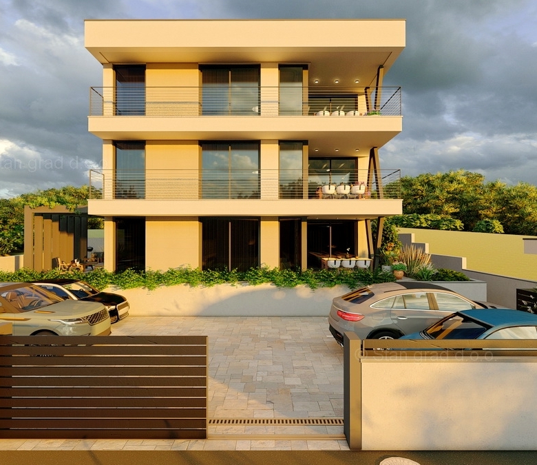 The Stan Grad Immobilien agency offers a super attractive apartment in the region of the island of Krk. This desirable apartment is located in a very good location near the center of Krk. Inside the luxuriously built building, the apartment is located on the 1st floor. The total area of the apartment is 134.08 m2. This area includes an entrance hall, a laundry room, a storage room, a living room and a kitchen, 3 floors, one of which has access to a balcony, 2 bathrooms, a covered terrace. The most modern materials, first-class ceramics and sanitary ware are used in the construction. The owner of the apartment will have two parking spaces at his disposal. In addition to the above, the described apartment has a beautiful view of the sea. This property is in the VAT system, which means that the buyer is not obliged to pay tax on the displayed price. The seller guarantees clean ownership documentation of the apartment and easy transfer of the property. The Stan Grad Immobilien agency will help you transfer ownership of the apartment. The property is currently under construction, and the anticipated move-in deadline is the end of 2023.