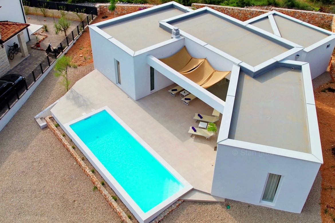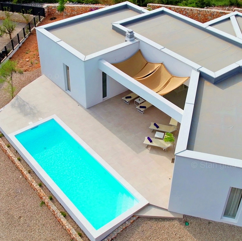 Among the wide range of properties in the northern Adriatic, Stan Grad Immobilien offers a very luxurious seaside villa in the attractive tourist region of the island of Krk. This house is positioned in a peaceful location near the town of Krk, not far from the sea.