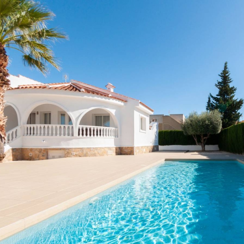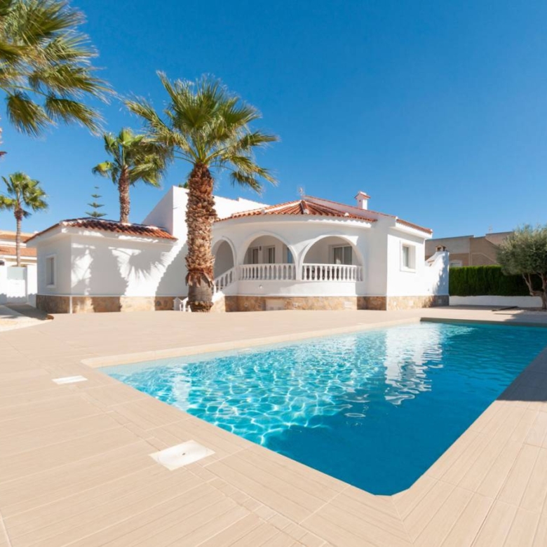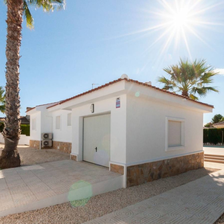 Villa for sale in Ciudad Quesada, Alicante, Costa Blanca The house is located on a 586m2 plot, of which we find more than 190m2 built. The house with 3 bedrooms and 3 bathrooms, living room, dining room, kitchen, terrace, solarium, garden with private pool and private parking. It is located in a unique enclave, close to all services, medical center, supermarkets and others. Total area 195.65 m2Property area 117 m2Terrace Area 78.65 m2Solarium Area 110 m2Plot area 586 m2Bedrooms 3Bathrooms 3Kitchens 1Terraces 2Private pool 8×4 m Private garage Yes Property ID: GH-307252-D Price: €563,926 Property Size: 130 m2 Land Area: 682 m2 Bedrooms: 3 Bathrooms: 2 Property Type: Villa Property Status: For Sale