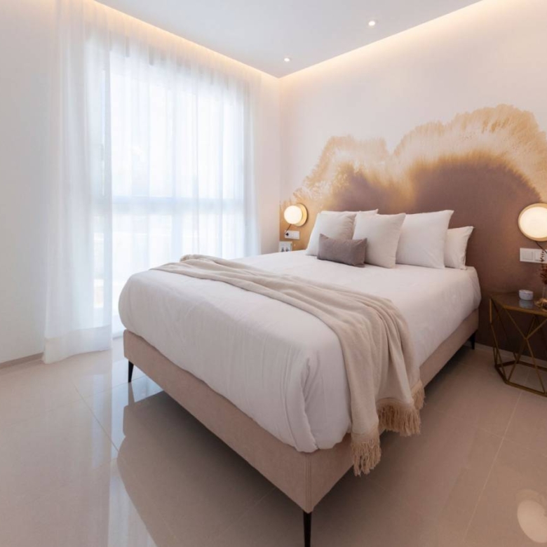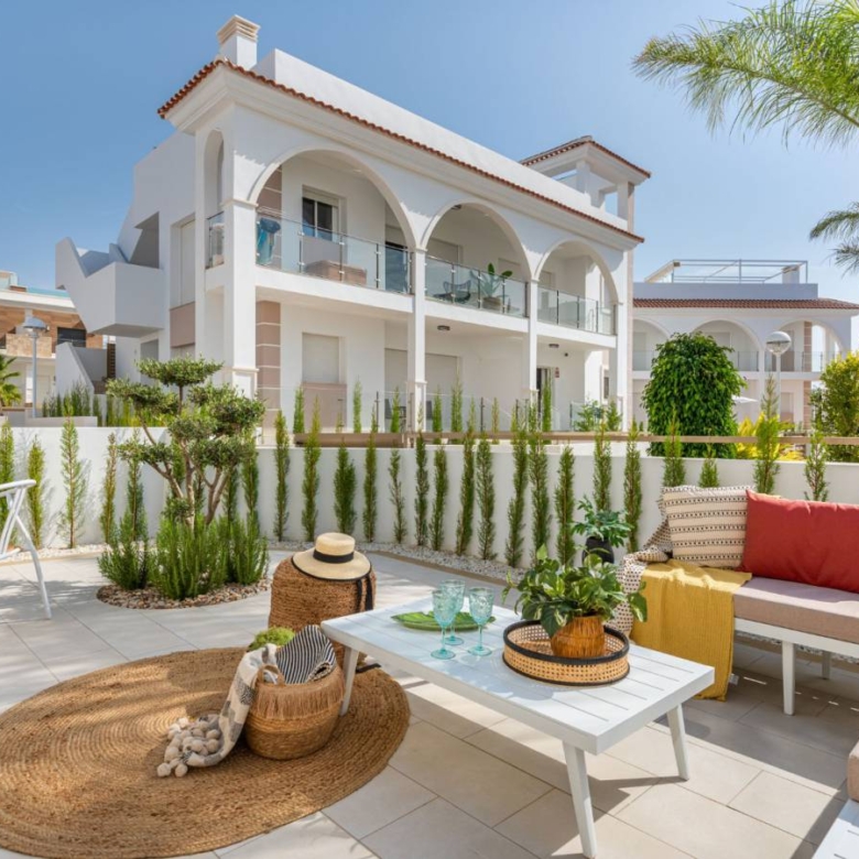 Apartments in Ciudad Quesada, Rojales, Alicante The apartments have 3 bedrooms and 2 bathrooms, an open kitchen, and a dining-living room. You can choose the option of a ground floor with a beautiful private garden or an upper floor with a spacious solarium. The residential complex is located close to all services, just 10 minutes from the beach and 35 minutes from Alicante Airport. A beautiful residential complex composed of different types of housing: apartments and semi-detached villas. Ciudad Quesada is an extensive urbanization within the town of Rojales, transformed into a small and charming village equipped with essential services and numerous leisure points. The location is excellent, next to La Marquesa golf course and only a ten-minute drive from the beaches of Guardamar del Segura. Furthermore, it is partially surrounded by La Mata Lagoon, a biodiverse natural space with an area of 700 hectares. In its vicinity, you will also find Elche-Alicante Airport, one of the busiest in the country, with a long list of destinations, including many cities in the United Kingdom and the entire central Europe. Property ID: GH-307618-D Price: €367,000 Property Size: 101 m2 Land Area: 107 m2 Bedrooms: 3 Bathrooms: 2 Property Type: Apartment Property Status: For Sale