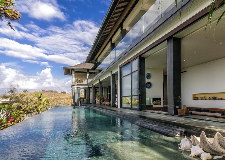 Extraordinary Cliff Top Luxury Mansion for Sale, Bukit, BaliLocated between Uluwatu and Nusa Dua on the Southernmost cliff of Bali, and yet only 25-minutes away from the airport.The 2-storey, contemporary Freehold villa is sprawled across 1485 Sqm of land with incredible panoramic ocean views. Featuring 7 bedrooms with 7 ensuite bathrooms and a 89sqm infinity-edge private pool, deck, and Bale with multiple terraces.Set within enchanted gardens, the 1281 Sqm fully-furnished villa has Japanese-style living, with open living, dining, and kitchen areas. includes Villa Manager, Butlers, Housekeepers, Chefs, Gardeners, and Engineers.Located in a gated lifestyle community on Bukit Pandawa, high above Pandawa Beach, minutes away from Bali’s spectacular and idyllic beaches, clubs, and surf spots. Located within 20-minutes of 3 world-class golf courses. Close to Nusa Dua, and Jimbaran Beach with their many restaurants. Pandawa Beach has its own access road – registered owners enjoy free access and parking.Nearby: Pandawa Hill Resort & Golf 1.2 km, Pandawa Beach 1.5 km, Mandarin Oriental Resrort 2.3 km, Karma Kandara Resort 4.5 km.