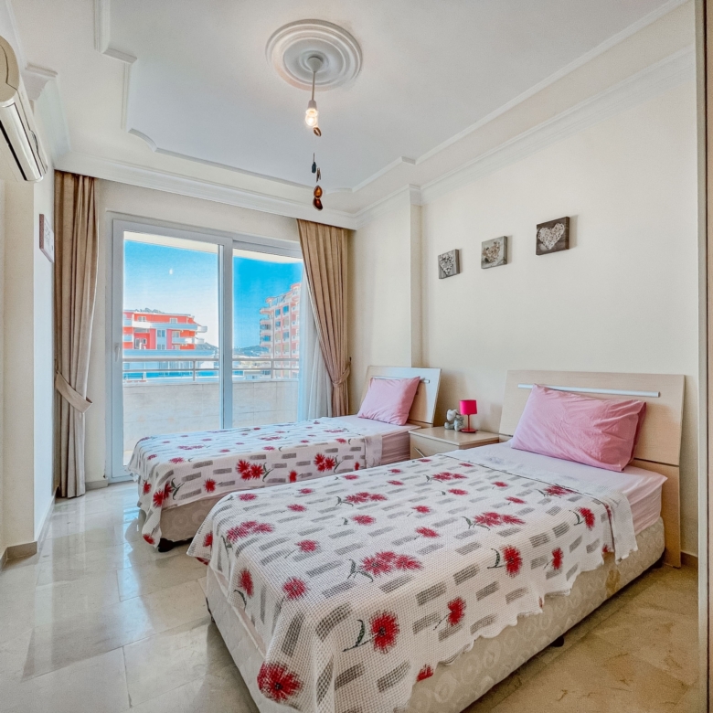 Welcome to a remarkable opportunity to embrace the coastal lifestyle in the heart of Mahmutlar. This 2+1 apartment, located within a prestigious residential complex, offers a living experience like no other. With its generous 110 m² layout, this property is designed to provide both comfort and style. The apartment boasts a fully renovated interior with an American-style kitchen, making it ideal for both relaxation and entertaining.- Key Features:- Spacious 2+1 layout with an American kitchen- Fully furnished with white goods and modern furniture- One bathroom and one WC for convenience- South-west facing with breathtaking views of the sea, castle, and cityscape- Directly adjacent to the beach for ultimate convenience- Access to an open swimming pool for leisure and relaxation- Complex Amenities:- Situated on the 7th floor of a 9-story building- Equipped with an elevator and intercom system- Managed by an on-site caretaker and secured with 24/7 camera surveillance- Features a generator for uninterrupted power supply- Offers a secure, password-protected entranceBuilt in 2009, this complex provides the perfect blend of modern living with the charm of coastal life. The apartment’s location and features make it a standout choice for those seeking citizenship opportunities, as it meets all eligibility requirements.Imagine waking up to the sound of waves and enjoying panoramic views from your own balcony. This property invites you to indulge in a lifestyle defined by luxury and convenience. Don’t miss this chance to own a piece of paradise in Mahmutlar. Act now to secure your dream home by the sea and experience the unrivaled benefits of this exceptional property.