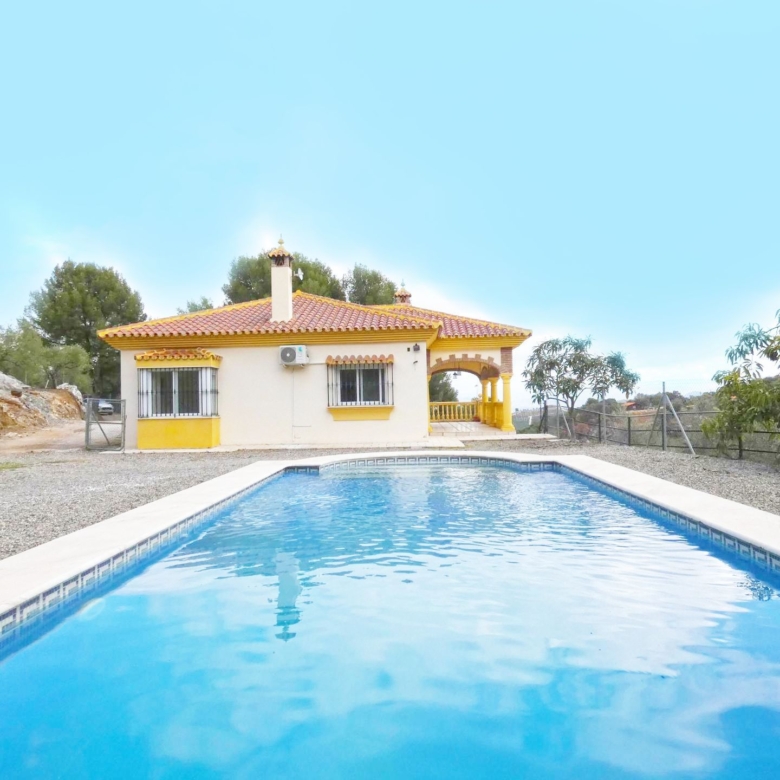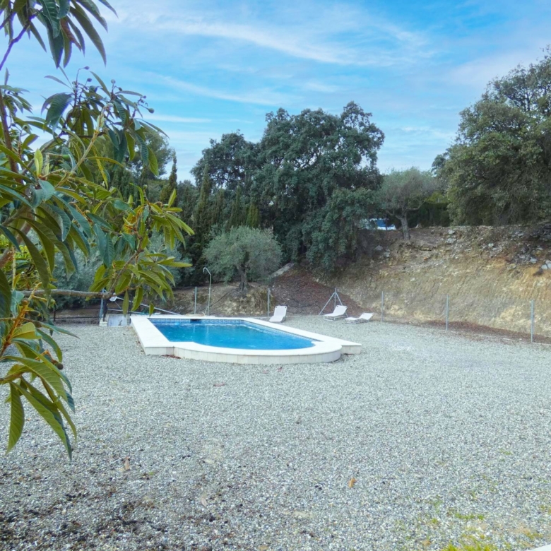 Marvellous country house located 6km from the centre of Coin (8-minute car drive). The property is located in a plot of over 7,000m2 in a beautiful enclave offering fantastic views and with mature trees a very natural environment. The trees that we find on the property are mainly olives with some avocados. The two-storey house offers 2 bedrooms, bathroom, kitchen, and living room with fireplace and direct access out onto a lovely, covered terrace. The ground floor is open-plan and measures 130m2. This part of the house can have large windows installed and be divided to make other bedrooms, bathroom, an extra living room, playroom, or a separate apartment. It is currently used as a garage and for storage. The swimming pool is a good size and very private. The road access to the house is good and tarmacked, whilst the property is fenced, has mains electricity and private well water. Property ID: ICPF4020805 Price: €336,000 Property Size: 240 m2 Land Area: 7229 m2 Bedrooms: 2 Bathroom: 1 Property Type: Country house Property Status: For Sale