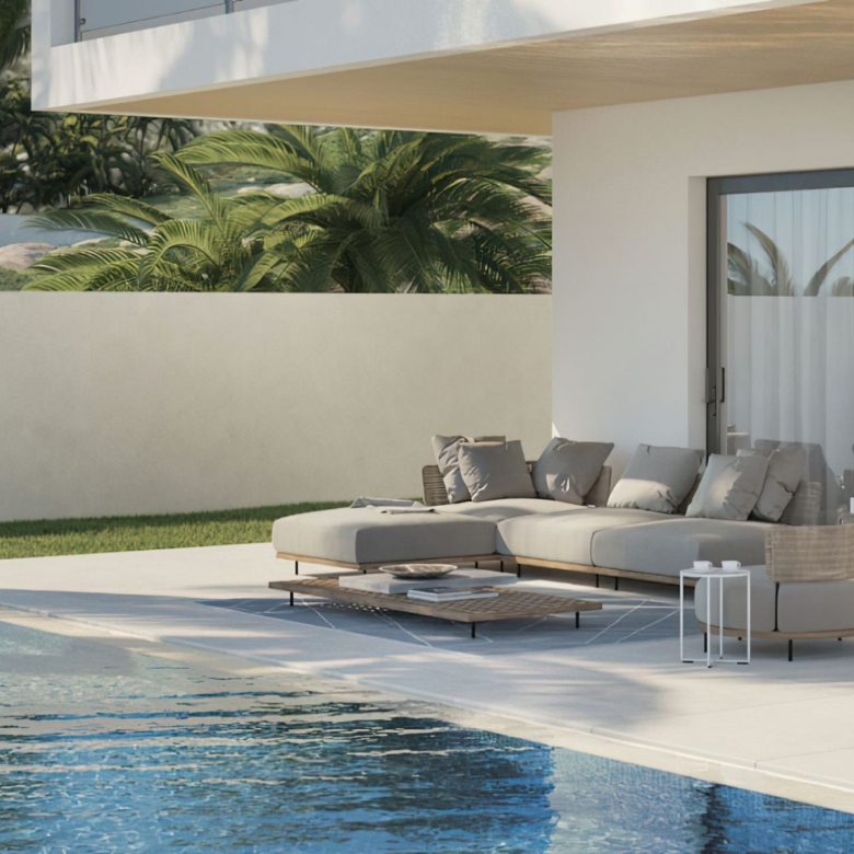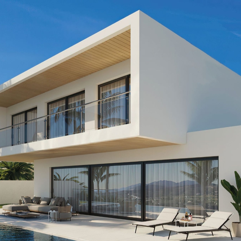 Connect with nature in these beautiful 3-storey villas on the outskirts of Coin. The large floor to ceiling window on the ground floor provides so much light that you could easily forget if you are inside or out, in the living room or on the terrace. It is a feeling of total continuity. In every space of the home, you can feel the connection with the natural environment, the garden, the terrace, the landscape, whilst taking in the breathtaking views. The design is inspired by the transparent waters of a crystalline river and helps you appreciate the beauty and the connection with the natural environment in every corner of the home. Its cubic and modular shape provides large open spaces that help you lead a comfortable and relaxed life. The Basement level provides both vehicle and pedestrian access to the house, parking area, machine room and the lift (elevator). The Ground Floor has the living room, kitchen-diner, and guest WC, plus a covered terrace and swimming pool outside. The Top Floor is where the bedrooms are, all with fitted wardrobes. The main bedroom has an ensuite bathroom, dressing room and covered terrace. The other two bedrooms have fitted wardrobes and a covered terrace with access to a shared bathroom. The garden will be landscaped with decorative plants, further adding to the appeal of the property. The design of the villa will be adjusted to the client’s taste. The location of the property can be chosen from the amongst the currently available plots and the house fixtures can be chosen from one of three different standard packages, though this can also be personalised according to the client’s preference. Property ID: ICPD4322728 Price: €820,000 Property Size: 215 m2 Land Area: 609 m2 Bedrooms: 3 Bathrooms: 2 Property Type: Villa Property Status: For Sale