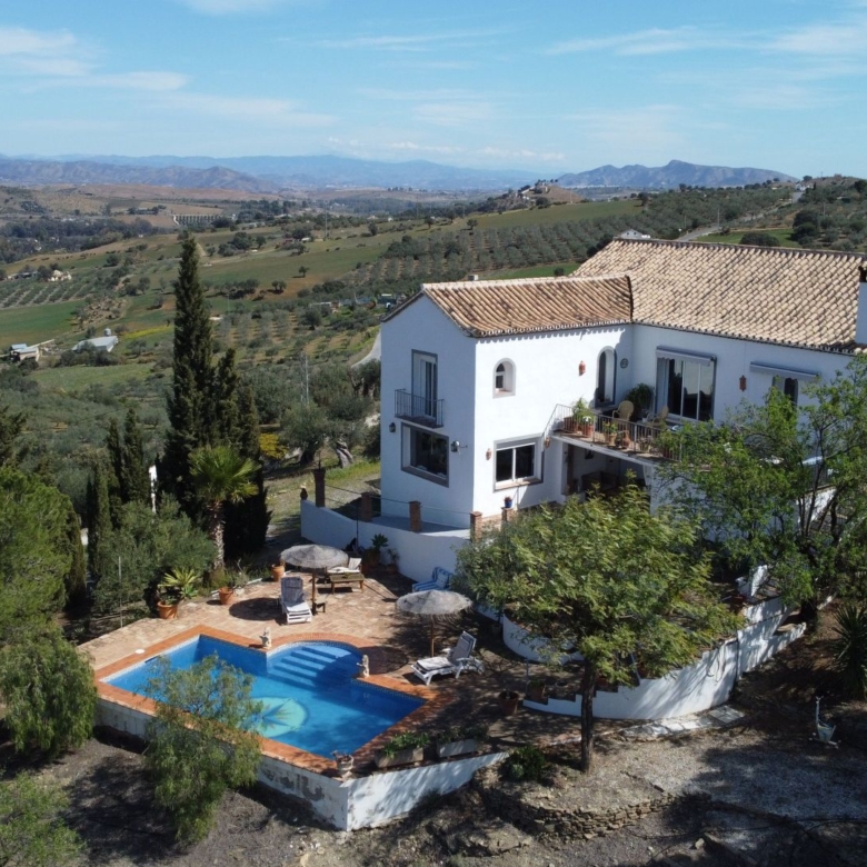 Nestled in the heart of the Andalucian countryside, this enchanting country house offers an idyllic retreat just 10 minutes away from the vibrant town of Coin and a scenic 40-minute drive to the renowned coastal towns of Marbella, Malaga and the airport Boasting excellent accessibility, the property beckons with unparalleled charm and breathtaking views from every vantage point. Set against the backdrop of over 3 hectares of meticulously maintained olive groves, this residence commands an elevated position, providing a captivating panorama of the surrounding landscape. The main living area exudes warmth and sophistication, featuring an open-plan design that seamlessly integrates the living room and kitchen-dining area. High wooden ceilings impart an airy and luminous ambiance, creating a welcoming space for relaxation. The house comprises three bedrooms, two bathrooms, and a charming mezzanine area that adds a touch of character. Outside, a garage and storeroom contribute to the practical aspects of the property, while the inviting pool and ample terraces beckon residents to savour the awe-inspiring views that stretch across the Andalucian horizon. Adding to the allure of this countryside haven is a separate guest apartment located below the main house. This self-contained retreat boasts an open-plan living and kitchen area, a cosy bedroom, a well-appointed ensuite bathroom, and an enclosed covered terrace, which is a private sanctuary for guests to unwind. A storeroom provides additional convenience. Stepping outside, the plot reveals flat areas ideal for equestrian enthusiasts, complete with a small stable, menage area, and a charming wooden storeroom. Revel in the joy of witnessing spectacular sunsets from the numerous terraces that adorn this captivating property, each one offering a unique perspective of the breathtaking surroundings. This country house seamlessly combines rustic charm with modern comfort, presenting a rare opportunity to embrace the quintessential Andalucian lifestyle amidst the splendour of nature. Immerse yourself in the tranquillity, beauty, and serenity that define this remarkable retreat, where every day unfolds against the backdrop of stunning vistas and the timeless allure of the Andalucian countryside. Property ID: ICPF4662418 Price: €750,000 Property Size: 327 m2 Land Area: 37278 m2 Bedrooms: 4 Bathrooms: 3 Property Type: Country house Property Status: For Sale