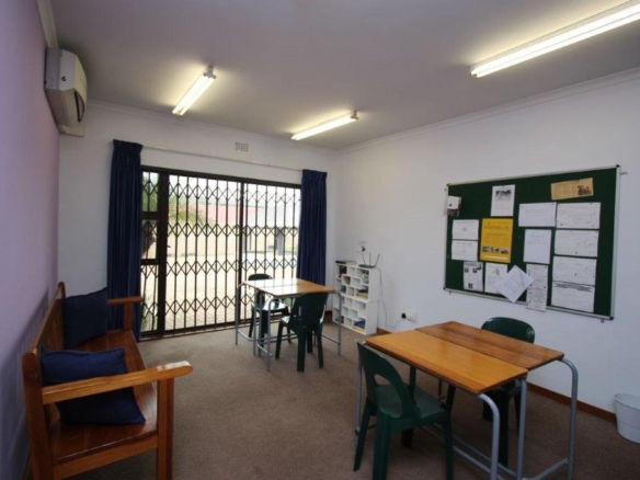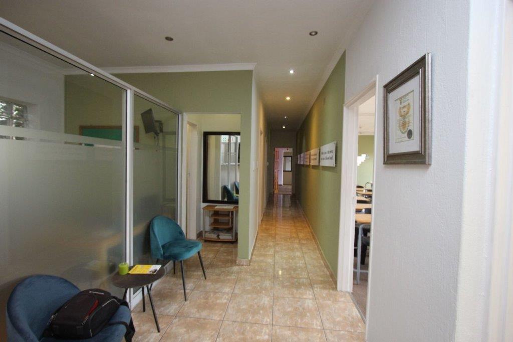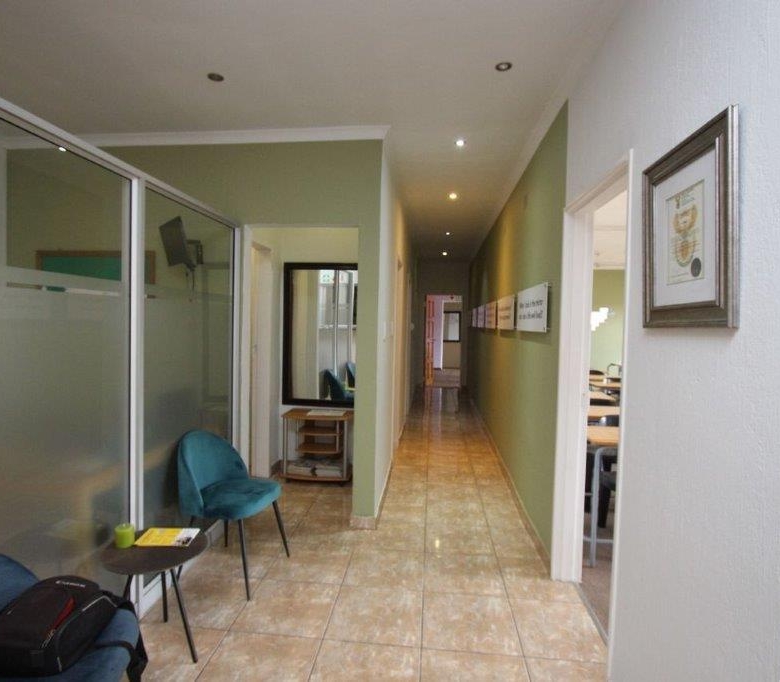The average income of households in the area is high and it is well above the average income of other wealthy areas. The residential homes are of high standards, top private schools are plenty, and the place is green everywhere. The property was renovated and refurbished in 2009 with quality facilities and structures. Old facilities and infrastructure were replaced with new ones, and additional facilities and security systems were added. This includes a new brick perimeter wall, electric wire and security systems (plus a security company to attend to alarm activations, if any), classrooms with air conditioners, fully tiled and carpeted everywhere inside, brick paved everywhere outside, spacious rooms, wooden doors and burglar bars, kitchen and storerooms, and much more. The outside area has beautiful flowers and trees all around ( palm trees, avocado and walnut trees, and olive trees) and there is a borehole with plenty water for the gardens. when I go outside I can see the Bruma mountain on my right and Eastgate shopping Centre nearby and glass buildings not far from here. The electric and plumbing systems are new, ceilings were replaced, door frames are new, and the place has been painted with lovely colours and maintained well all along.