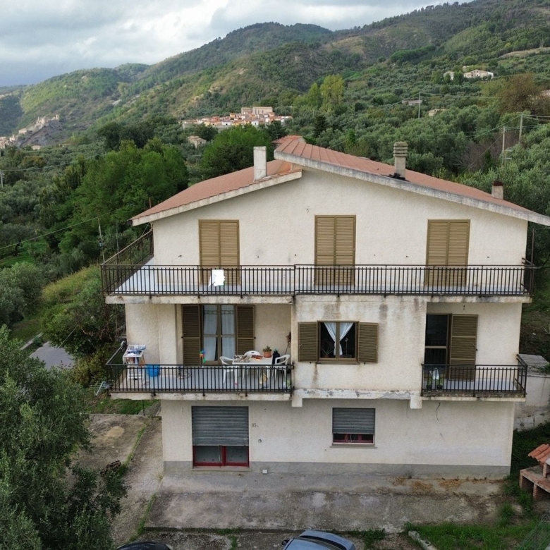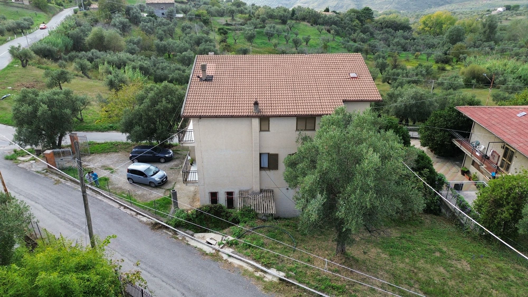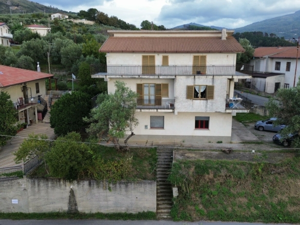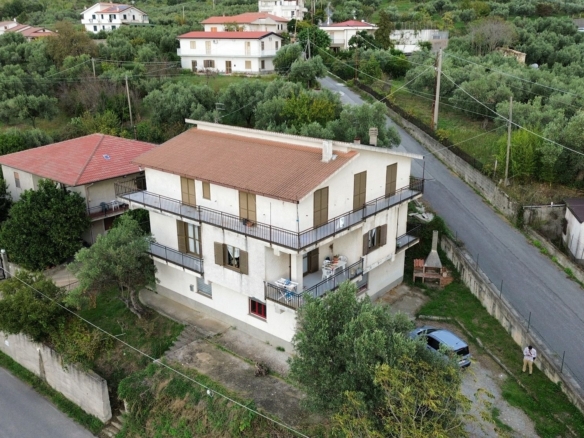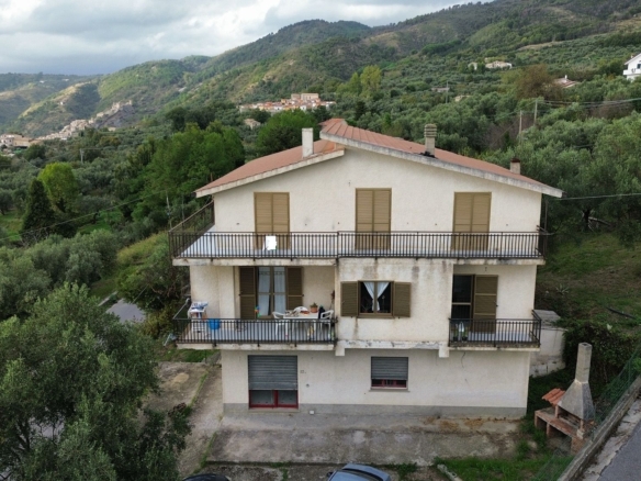 This distinctive property comprises two primary units, each offering significant space and unique characteristics. The second floor hosts a well-appointed apartment spanning a generous 132 square meters. This residential haven features a practical and sociable layout, incorporating three comfortable rooms adaptable as bedrooms or studies, an open-plan living and kitchen area fostering a sense of togetherness and modern living, a functional bathroom, and a convenient storage room for household necessities. A notable highlight of the apartment is its private balcony, offering breathtaking panoramic vistas that stretch across verdant olive groves and culminate in the majestic silhouette of the historic Cleto Castle, providing a daily spectacle of Calabrian beauty.