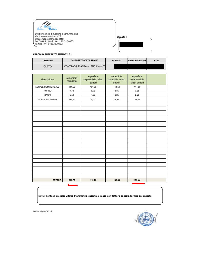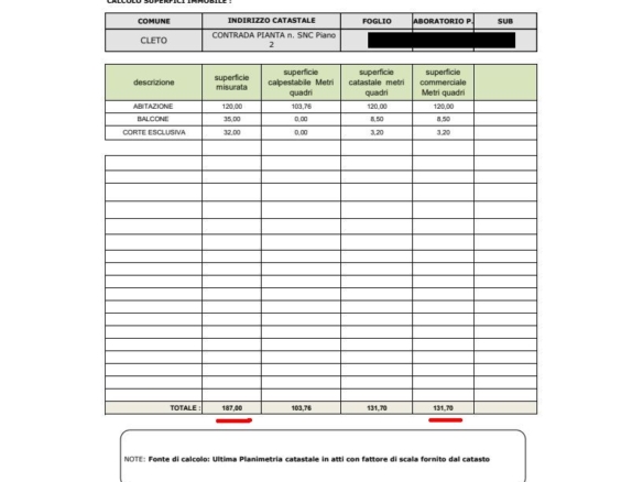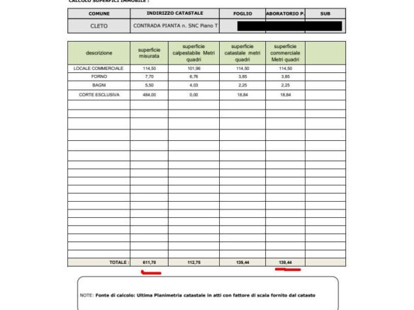 The property further benefits from an additional outdoor garden area, offering a touch of green tranquility and potential for landscaping or personal enjoyment. The combined area of the ground floor commercial space and the second-floor apartment totals an impressive 272 square meters (140 m2 + 132 m2), representing a significant property footprint with diverse possibilities for utilization. Located specifically in Contrada Pianta within Cleto, this property offers a blend of peaceful residential living and promising commercial prospects within a region rich in history, culture, and natural beauty.