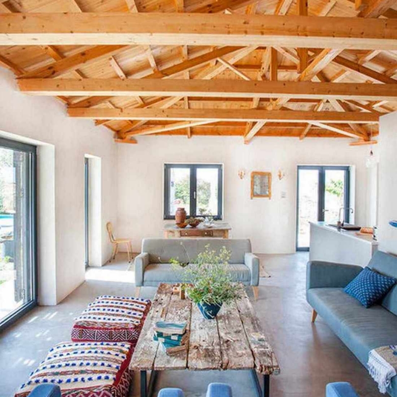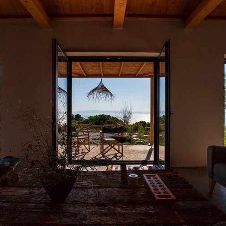 All cottages have traditional wooden open beamed ceilings. All doors and windows are double glazed and have mosquito screens. Each cottage has direct views to the Sea from their terrace. The first cottage has a double bed bedroom area with seating/dining room, kitchen and a bathroom. The second and the biggest cottage has 1 double bed bedroom, one bathroom, a W.C, a spacious living/ dining area and a kitchen with utility room.