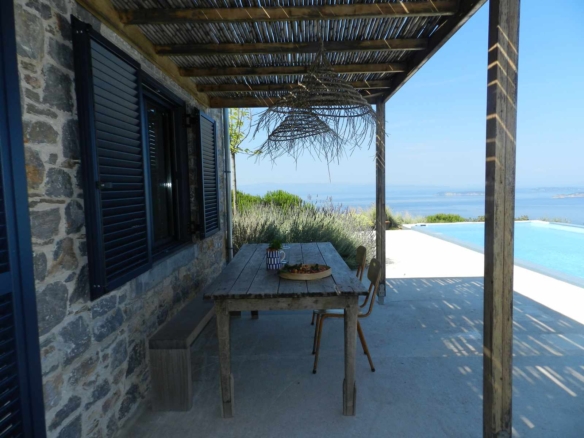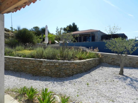 Very well designed complex of cottages in the area of Glossa on the top of a hill. The property has splendid views to the Aegean Sea and the neighboring island of Skiathos. Because of its location it dominates the area and has views on both sides of Skopelos Island. It has been recently built and it is a property ready to move in. There are three stone made cottages all very well designed and comfortably finished. There is a swimming pool and plenty of terraces around the pool. Ideal property for big families and very easy to rent.