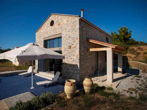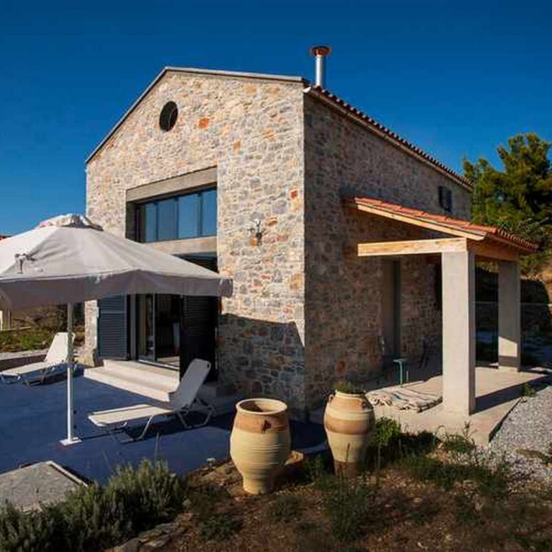 Very well designed complex of cottages in the area of Glossa on the top of a hill. The property has splendid views to the Aegean Sea and the neighboring island of Skiathos. Because of its location it dominates the area and has views on both sides of Skopelos Island. It has been recently built and it is a property ready to move in. There are three stone made cottages all very well designed and comfortably finished. There is a swimming pool and plenty of terraces around the pool. Ideal property for big families and very easy to rent.