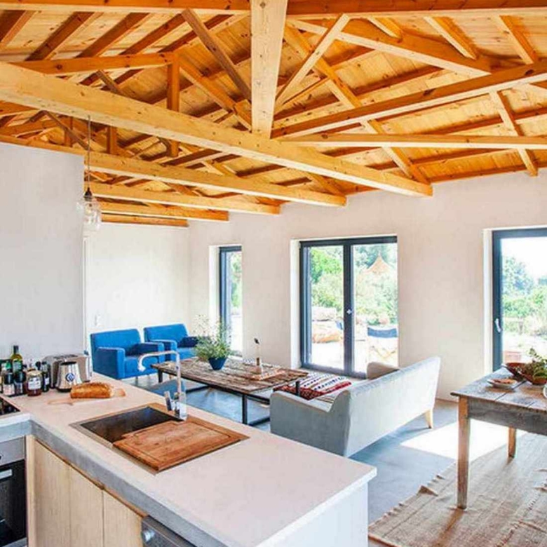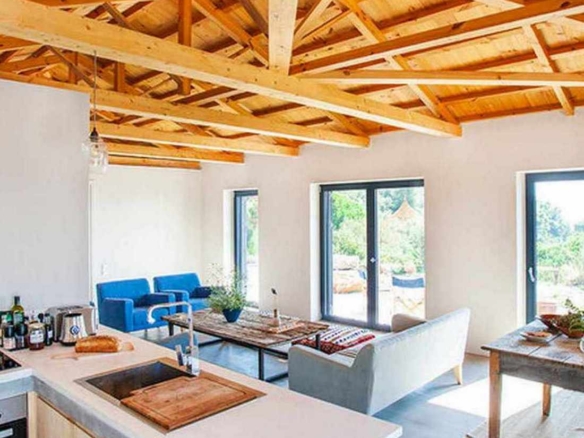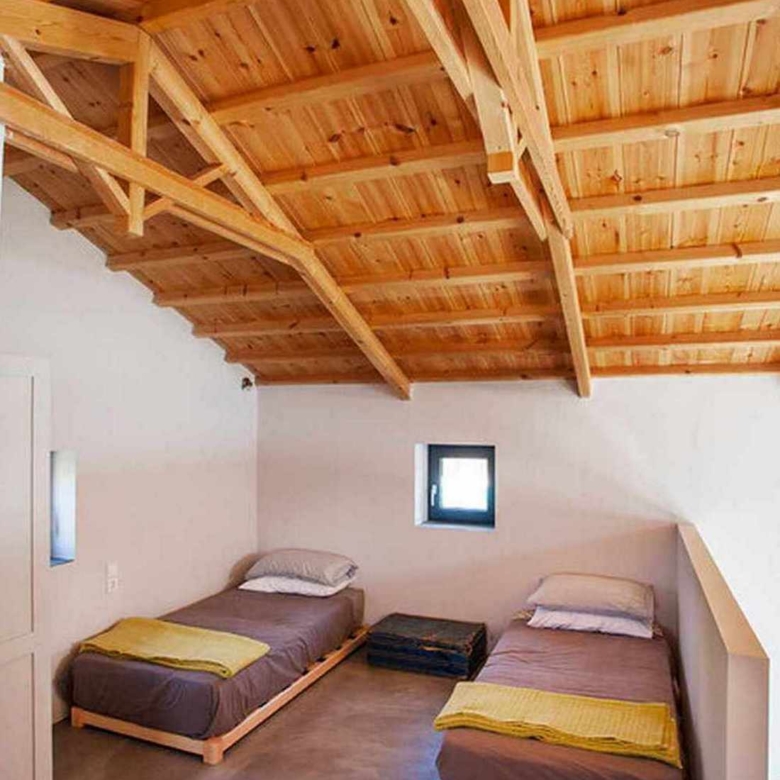 All cottages have traditional wooden open beamed ceilings. All doors and windows are double glazed and have mosquito screens. Each cottage has direct views to the Sea from their terrace. The first cottage has a double bed bedroom area with seating/dining room, kitchen and a bathroom. The second and the biggest cottage has 1 double bed bedroom, one bathroom, a W.C, a spacious living/ dining area and a kitchen with utility room.