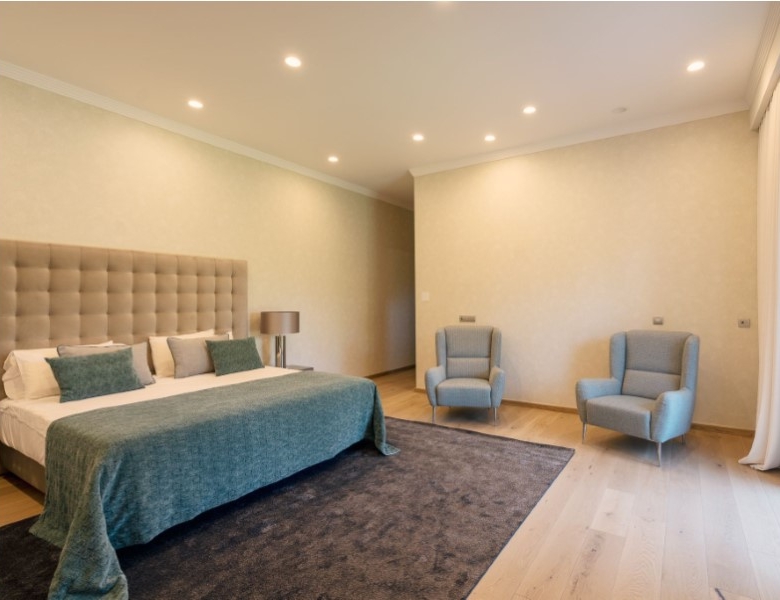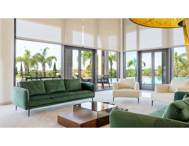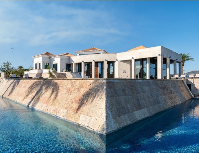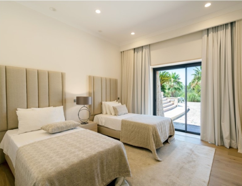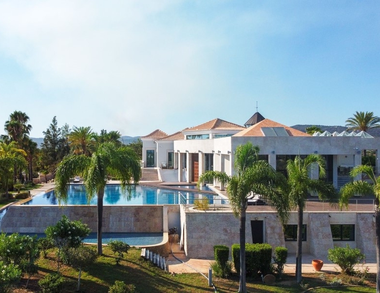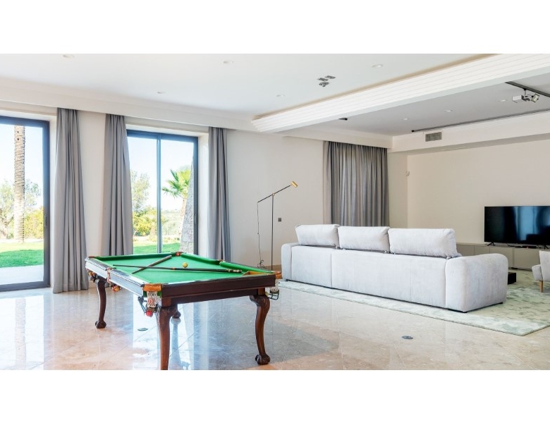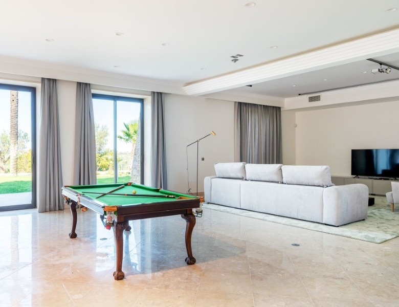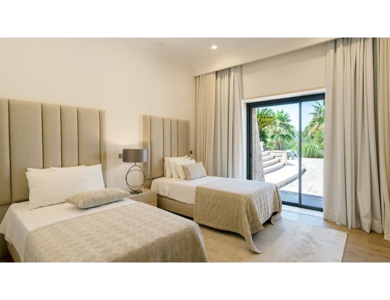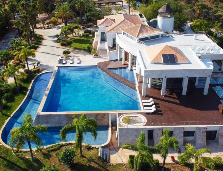 This outstanding property located in the countryside and surrounded by landscaped gardens with water features ensures absolute privacy to its residents. On the ground floor, an open space split-level interior creates a genuine sense of space with height ceiling and floor-to-ceiling windows in the living room. The modern kitchen and dining area offer direct access to an outside covered dining space. The lower-level features ensuite bedrooms, an art gallery and cinema room, a wine cellar, a laundry room, and ample storage. The master suite on the upper level has a shower room, jacuzzi, and two dressing rooms. Outside, an old windmill has been carefully refurbished and beautifully integrated into the architectural footprint. A custom-designed heated swimming pool and Jacuzzi add dramatic perspective to the expansive grounds surrounding the villa. The tennis court provides further recreational opportunities. A helipad can be found attached to the garden. All social area floors are in Portuguese grey lioz natural stone including the stairs, circulation areas, and garageGlashutte Limburg, Germany interior lighting systemSpacious master bedroom finished in travertino Italian stone with SPA and steam room bath, ‘Hansgrohe lite’ shower unitHansgrohe tapsVilleroy u0026amp; Bosch fittings in bathroomsDuravit fitted in social toilets, with underfloor heating. Duravit Stark 1 design by Philippe StarckHeated mirrorsDouble ceiling-height living room with fireplaceHome cinemaWine cellarGarage for 5 cars and golf buggyDining room with solid wood Mogno table with extension for 24 personsMovement sensors, with timers located in the corridors throughout the house for energy efficiencyHeated infinity pool surrounded by Mediterranean gardens and automatic irrigation systemExterior barbecue with 3 divisions: fish, meat, refrigerator, and waterThe kitchen is fully equipped with granite counters and Gaggenau and Miele stainless steel appliancesMovement sensors, with timers located in the corridors throughout the house to help with energy efficiencySolar panels for heating waterCovered terraces and pergolas for protection from the sun in summer and allowing light to enter the villa in winterBang u0026amp; Olufsen TV, DVD u0026amp; sound systemAlarm with video entry phone systemAir conditioning system: Daikin – high qualitySolar panels for hot water3 CCTV television points in the hall, master bedroom, and laundry room6 ‘Philips’ CCTV cameras that provide surveillance for the groundsUnderfloor heatingLandscaped with Mediterranean and New World floraFootball pitch with a clay surfaceConverted windmill with refurbished mill house and tower. Internal spiral staircase to viewing gallery with 360-degree countryside and ocean. Features Quality Newly built Outside Balcony Energy & utilities Energy consumption rating: B Emissions rating: B Property ID: golden1093 Price: €5,850,000 Property Size: 513 m2 Bedrooms: 6 Bathrooms: 7 Property Type: Villa Property Status: For Sale