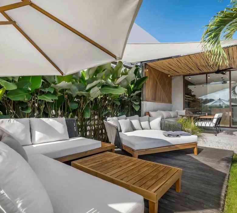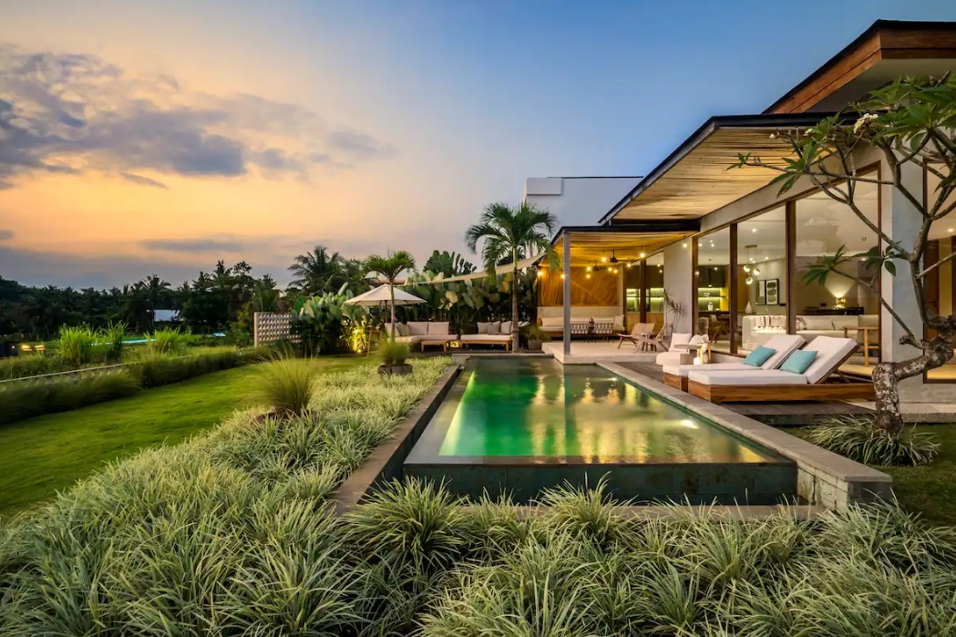 The villa offers two spacious bedrooms, with the option to easily add a third, along with 2.5 bathrooms featuring rain showers and double sinks. A fully equipped kitchen, enclosed dining, and living area flow effortlessly toward the outdoors, where a private 18 sqm pool and generous garden frame the stunning west-facing rice field views.