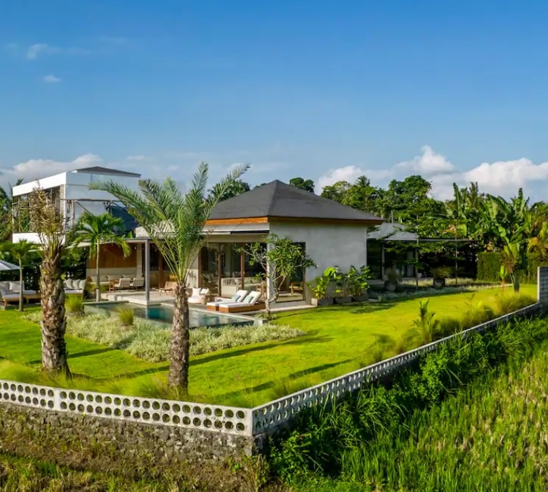 Located in the peaceful and highly desirable village of Mas, just minutes from central Ubud, this contemporary single-level villa blends modern comfort with the natural charm of Bali’s rice field landscape. Sitting on 785 sqm of land with a 230 sqm building, the property enjoys a freehold (HGB) title and is ideally suited as a private residence or a long-term rental investment.