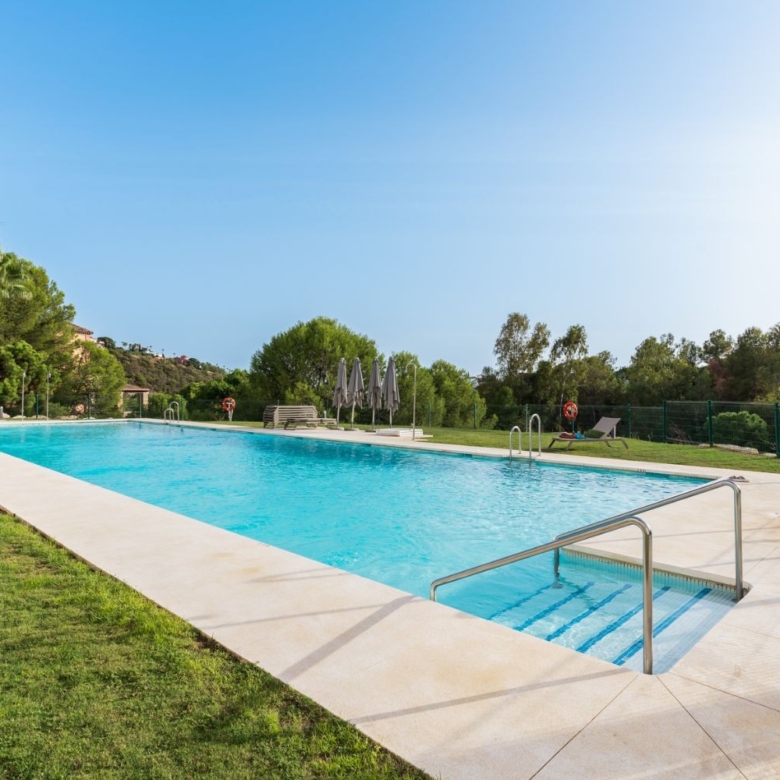 Contemporary southwest facing apartment in La Reserva de Alcuzcuz, Benahavis. This gated community has 24 hour security, well maintained gardens, communal pool and is a short drive to Marbella, San Pedro and amenities. The property has an entrance hall; bright and spacious living-dining room with access to the terrace; fully equipped open kitchen with laundry room and equipped with top quality appliances; master bedroom suite with access to the terrace; two other bedrooms with shared bathroom. This apartment is ideal as a holiday home, situated in a quiet area, with panoramic views over the countryside and a short walk to the beach. Other features include hot and cold air conditioning, underfloor heating in the bathrooms, storage room and private parking.