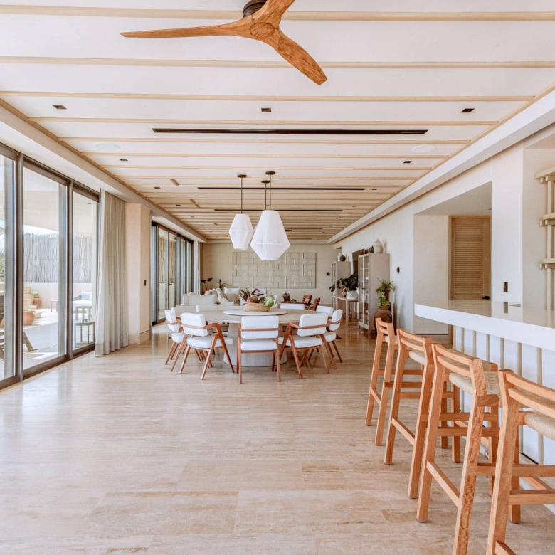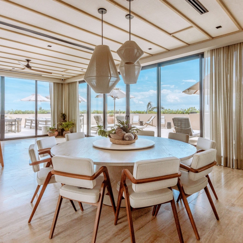 The expansive outdoor terraces take full advantage of the Riviera Maya’s tropical climate. They feature a pool and a generously sized living and dining area, all perfect for al fresco gatherings or simply unwinding to the sound of the waves. The direct elevator access enhances privacy and convenience, while high-end finishes throughout the home add an extra layer of sophistication to this remarkable property.