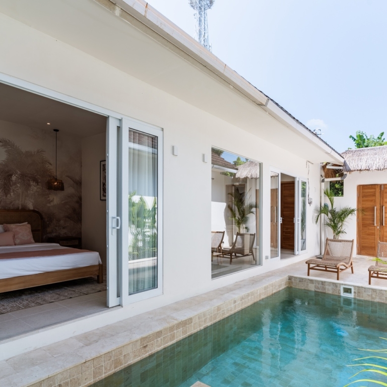 Wake up to sweeping ocean views and end your days with Bali’s golden sunsets from this Mediterranean-style apartment in Balangan. Featuring a bright, west-facing layout, enclosed living area, and a shared pool surrounded by greenery, this home is designed for effortless coastal living. Just two minutes from Balangan Beach and a short drive to Bingin, it’s the perfect combination of tranquility and connection. A turnkey investment for those who crave beauty, balance, and sea views every day.