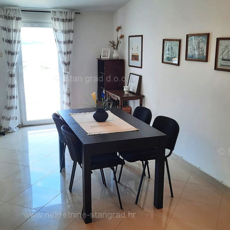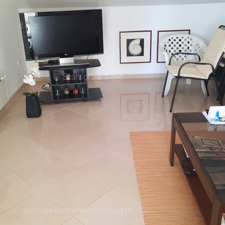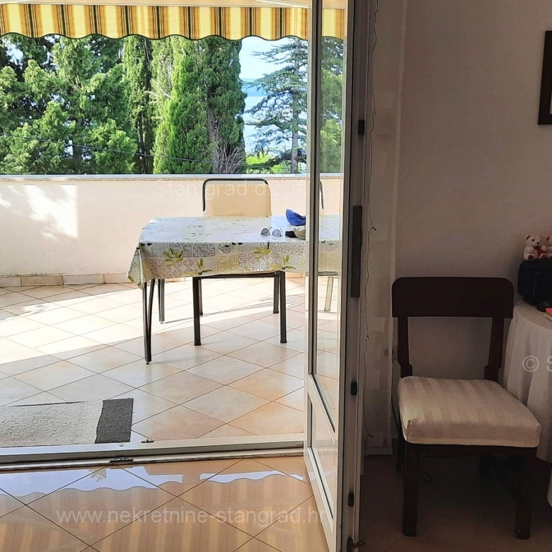 On sale at the agency Stan Grad Immobilien is a very good apartment in the Mediterranean region of Kvarner, a traditionally attractive area for tourist stays on the Croatian Adriatic. This property is located in an excellent location, close to the sea and the beach and not far from the center of Crikvenica. In nature, it is a very spacious and comfortable one-story apartment. In a very good and quality building, the apartment is located on the 2nd floor. The apartment has a total area of approximately 101 m2. This area includes the living room and kitchen, 3 bedrooms, bathroom, toilet and two spacious terraces, and it has a storage room with a terrace of 21 m2 on the ground floor. The maintained interior of the property is equipped with a set of quality technical equipment and pieces of good furniture. The owner of the apartment can use all the common parts and spaces of the property without hindrance. The owner of the apartment has the option of parking in the garden. In addition to the previously mentioned properties, this apartment has a view of the landscaped surroundings and the natural landscape. The apartment in question is owned by a physical obligation and upon transfer of ownership is subject to the calculation of real estate sales tax in the amount of 3%. The seller guarantees the orderliness of the relevant technical and ownership documentation, as well as the possibility of a quick and smooth transfer of ownership of the apartment to the buyer. In this big step, your partner Stan Grad Immobilien is here to provide you with all the necessary support and security in buying real estate. If you decide for us, the expert team of the Stan Grad Immobilien brokerage office will be happy to assist you in transferring the ownership of the property and the bill for utility connections to your name.