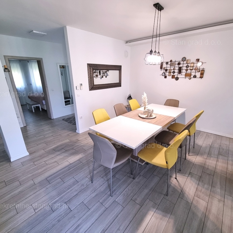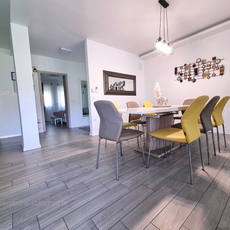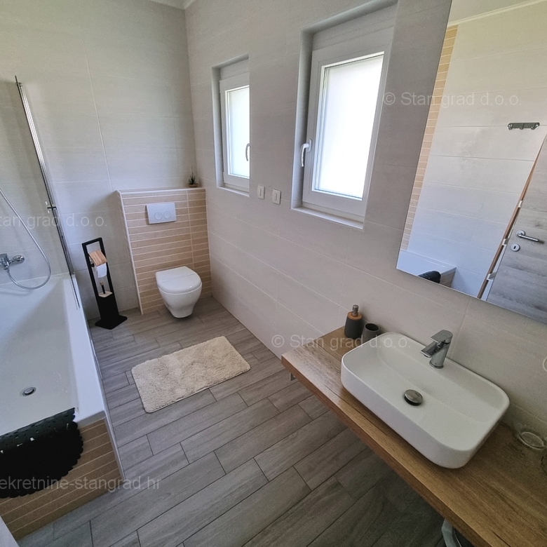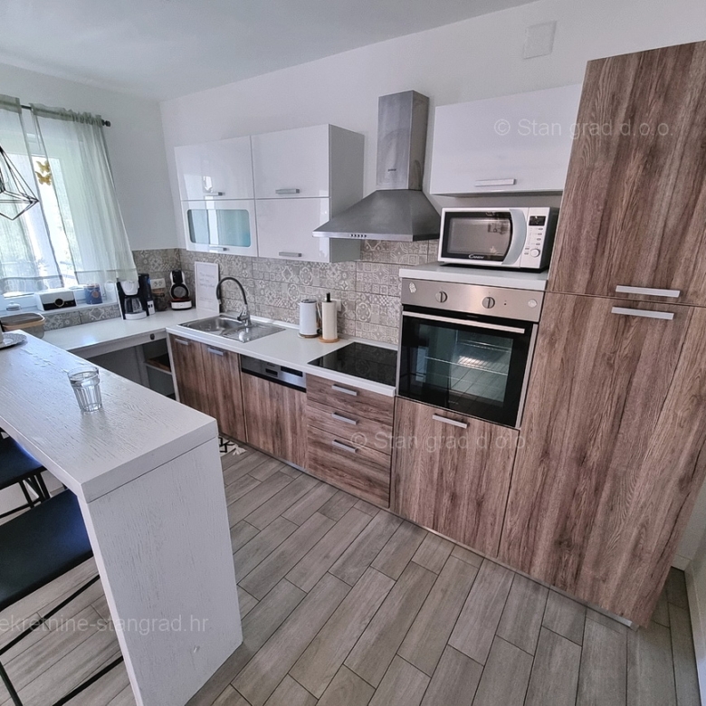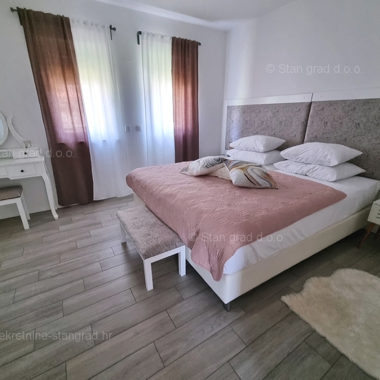 In the offer of our agency in the super attractive northern Adriatic area, in Kvarner, a fully furnished tourist house is for sale, which provides the perfect atmosphere for spending annual and weekend vacations. The property is located in the hinterland of Crikvenica, in a location that offers enjoyment in the greenery of nature. Structurally speaking, this is a single-story house. The object of excellent quality is built on a total of 2 spatially useful floors. The total area of this house is 340 m2. This area is occupied by a living room and a kitchen with a dining room, 4 bedrooms, each of which has its own bathroom, 2 toilets, two balconies, a terrace, a playroom and a sauna. The exceptionally well-maintained interior of the property is excellently equipped with luxurious and high-quality furniture and modern technical equipment. In the basement there is an indoor heated pool with underfloor heating, and there are showers and dehumidifiers nearby. The special charm of this property is given by the landscaped garden with a terrace with a sunbathing area and a barbecue. Within the parking space on the property’s garden, it is possible to comfortably park several vehicles. In addition to all of the above, it must be said that the house has a nice view of the lake and nature. It is important to note that the property was used exclusively for rental purposes and has a well-established business. This real estate is owned by a natural person and as such, upon transfer of ownership to the buyer, is subject to the obligation to pay real estate sales tax in the amount of 3%. The real estate seller guarantees a quick transfer of ownership rights and proper ownership and technical documentation. We cordially await you at the address of the office on the island of Krk. If you place your trust in us, the Stan Grad Immobilien agency will be happy to help you transfer the ownership rights of this property and the bill for its utility connections and services to your name.