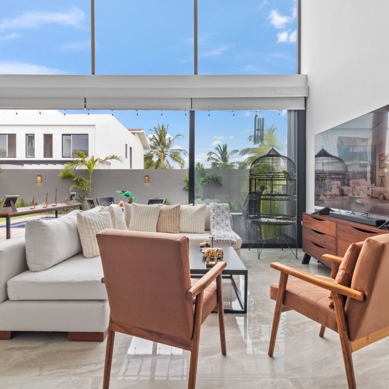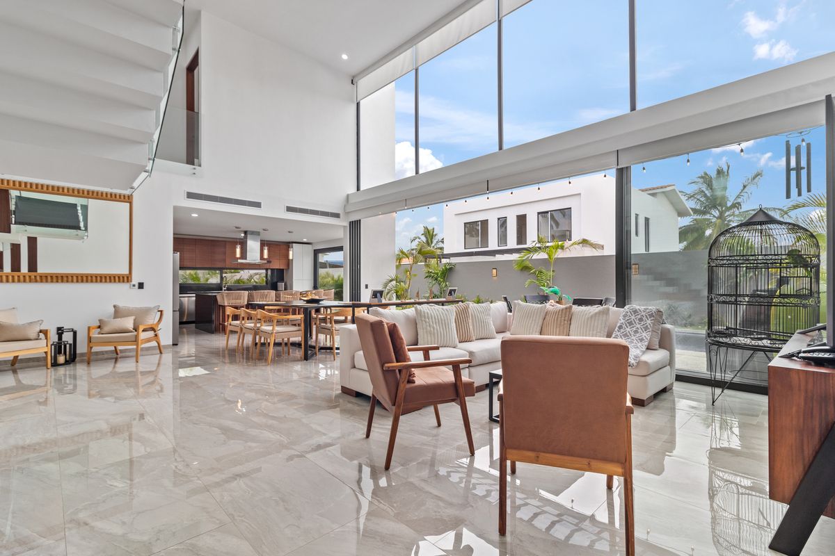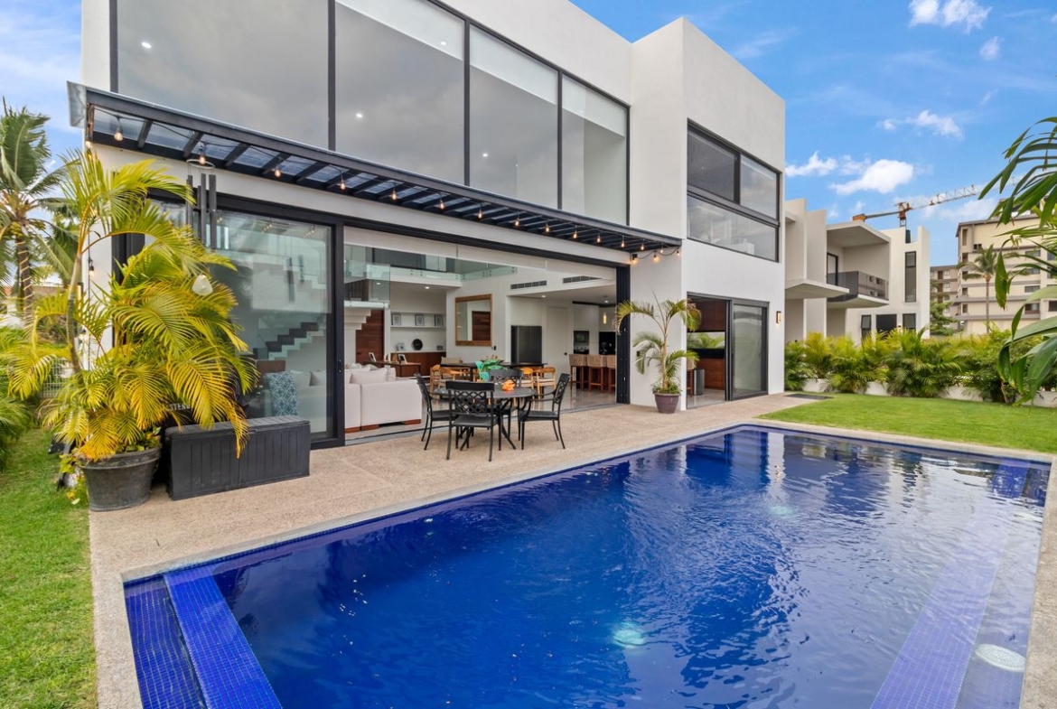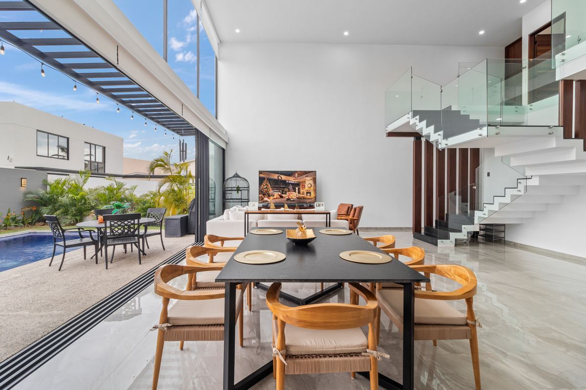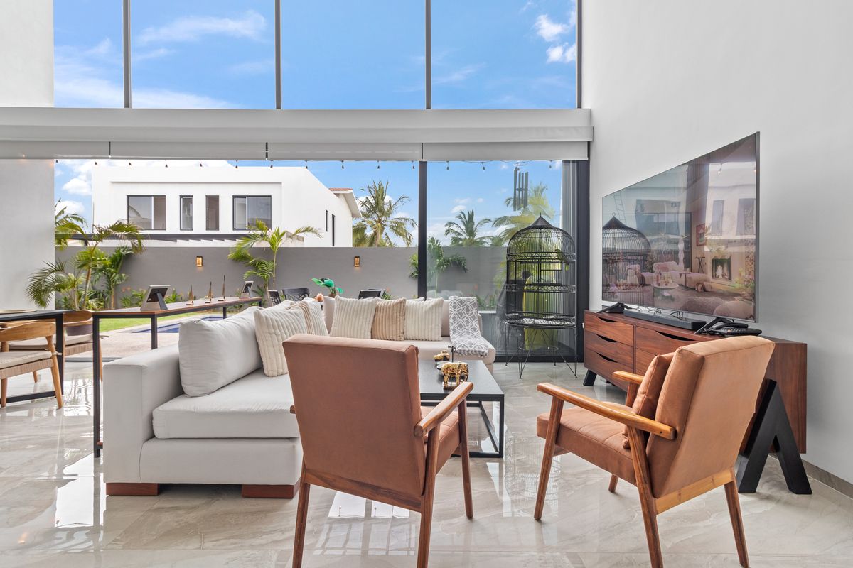 Enter yourself in modern luxury with this new -year -old two -story house located in the prestigious private and closed community of the Tigers in Nuevo Nayarit. The main level has a surprising double -height living room, which creates a feeling of greatness as natural light is filtered through large sliding doors that open without problems the private garden and attractive pool. On the upper floor, the distribution of the house continues to impress with three additional bedrooms, each with its own private bathroom. This large property is not only ideal for families, but also for those who love to entertain or receive guests. With its luxurious design, functional spaces and incomparable location, this house offers a unique opportunity to experience the best of life in Nuevo Nayarit. Step into modern luxury with this newly built, two-storey home located in the prestigious, private, and gated community of Los Tigres in Nuevo Nayarit. With 4 spacious bedrooms, 4.5 bathrooms, and exceptional living spaces, this home offers the perfect combination of comfort, elegance, and functionality.The main level features a striking double-height living room, creating a sense of grandeur as natural light pours through large sliding doors that open seamlessly to the private garden and inviting pool. Porcelain floors throughout enhance the home’s sleek aesthetic, while the expansive kitchen is a true entertainer’s dream. Equipped with high-end appliances, a large center island, custom parota wood cabinetry, and an oversized pantry, this kitchen is designed to impress and accommodate gatherings of any size.On the main floor, you’ll also find a generous bedroom with an ensuite bathroom, ideal for guests or as a convenient master suite alternative. For movie enthusiasts, the dedicated cinema room is perfect for cozy movie nights or binge-watching your favorite series in style.This expansive property is not only ideal for families but also for those who love to entertain or host guests. The exclusive Los Tigres community offers additional perks, including access to the Los Tigres Sports Club, making it easy to enjoy an active lifestyle just steps from your door.With its luxurious design, functional spaces, and unparalleled location, this home offers a rare opportunity to experience the best of Nuevo Nayarit living. Schedule your private showing today and make this exquisite property your new home.