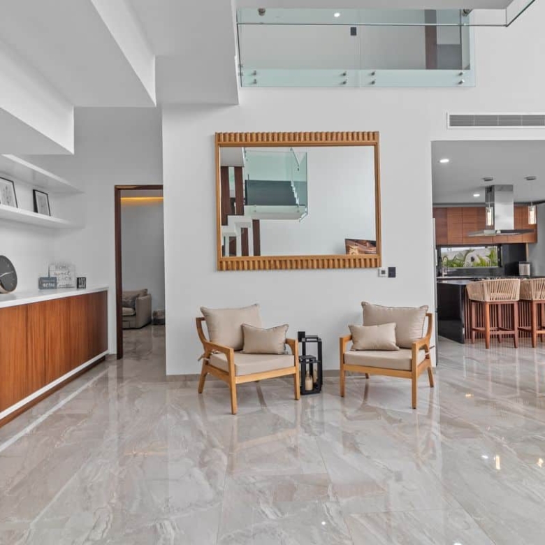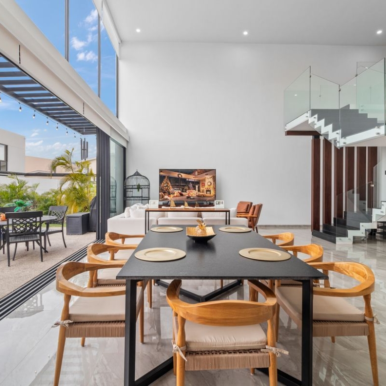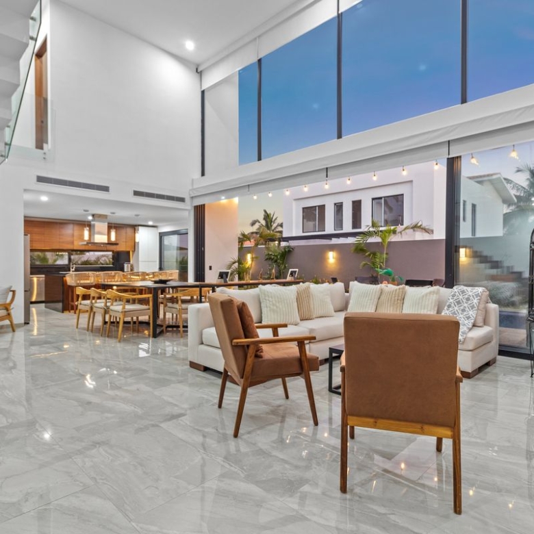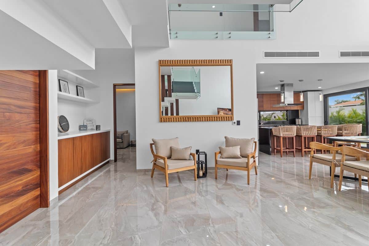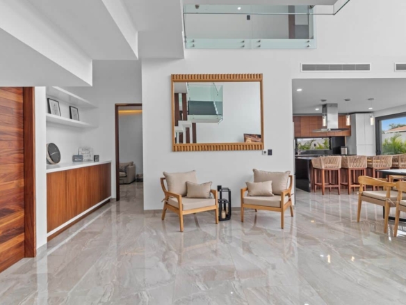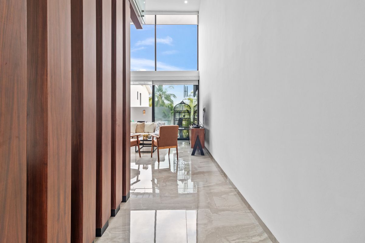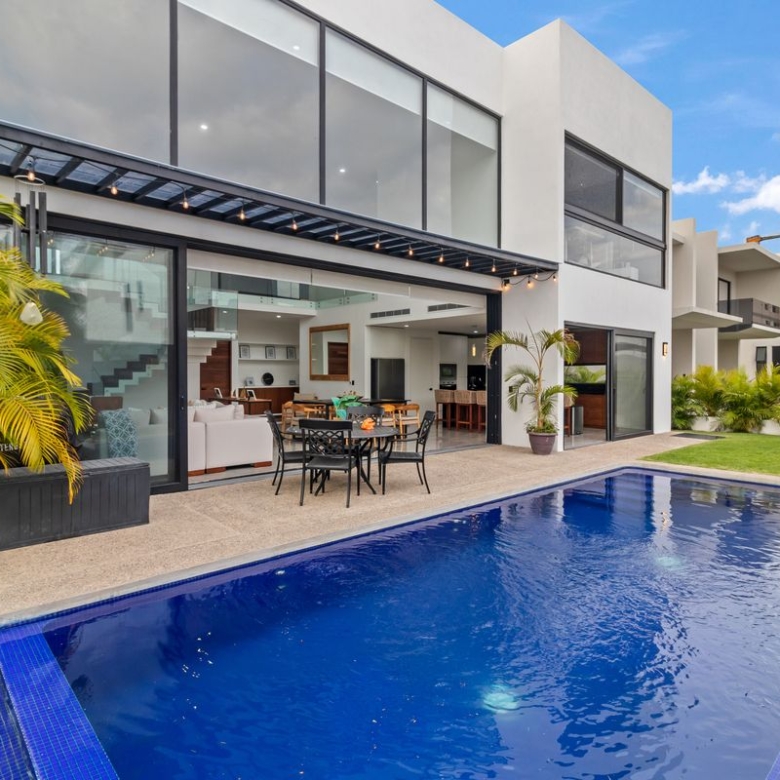 Enter yourself in modern luxury with this new -year -old two -story house located in the prestigious private and closed community of the Tigers in Nuevo Nayarit. The main level has a surprising double -height living room, which creates a feeling of greatness as natural light is filtered through large sliding doors that open without problems the private garden and attractive pool. On the upper floor, the distribution of the house continues to impress with three additional bedrooms, each with its own private bathroom. This large property is not only ideal for families, but also for those who love to entertain or receive guests. With its luxurious design, functional spaces and incomparable location, this house offers a unique opportunity to experience the best of life in Nuevo Nayarit. Step into modern luxury with this newly built, two-storey home located in the prestigious, private, and gated community of Los Tigres in Nuevo Nayarit. With 4 spacious bedrooms, 4.5 bathrooms, and exceptional living spaces, this home offers the perfect combination of comfort, elegance, and functionality.The main level features a striking double-height living room, creating a sense of grandeur as natural light pours through large sliding doors that open seamlessly to the private garden and inviting pool. Porcelain floors throughout enhance the home’s sleek aesthetic, while the expansive kitchen is a true entertainer’s dream. Equipped with high-end appliances, a large center island, custom parota wood cabinetry, and an oversized pantry, this kitchen is designed to impress and accommodate gatherings of any size.On the main floor, you’ll also find a generous bedroom with an ensuite bathroom, ideal for guests or as a convenient master suite alternative. For movie enthusiasts, the dedicated cinema room is perfect for cozy movie nights or binge-watching your favorite series in style.This expansive property is not only ideal for families but also for those who love to entertain or host guests. The exclusive Los Tigres community offers additional perks, including access to the Los Tigres Sports Club, making it easy to enjoy an active lifestyle just steps from your door.With its luxurious design, functional spaces, and unparalleled location, this home offers a rare opportunity to experience the best of Nuevo Nayarit living. Schedule your private showing today and make this exquisite property your new home.