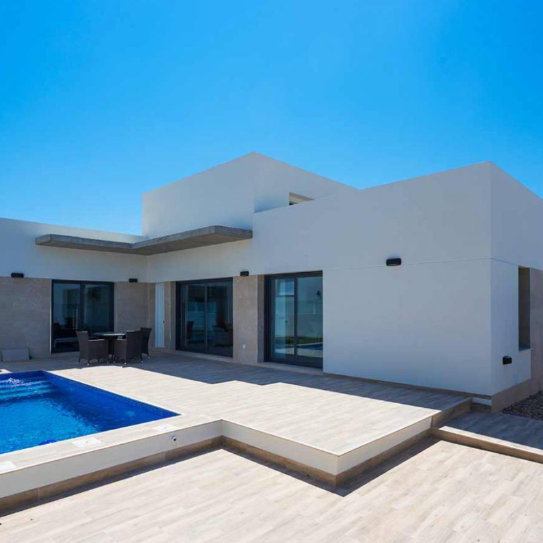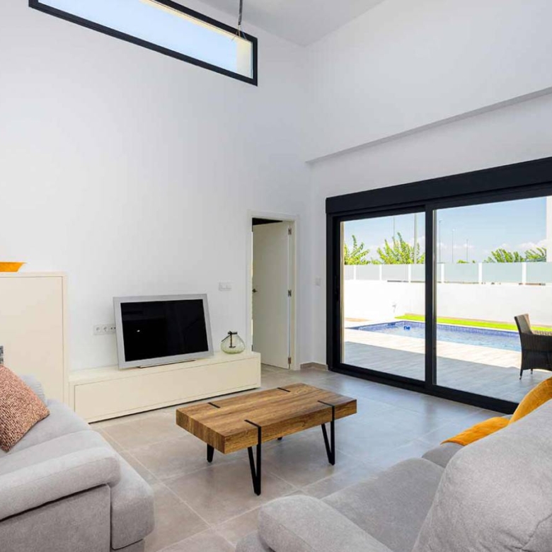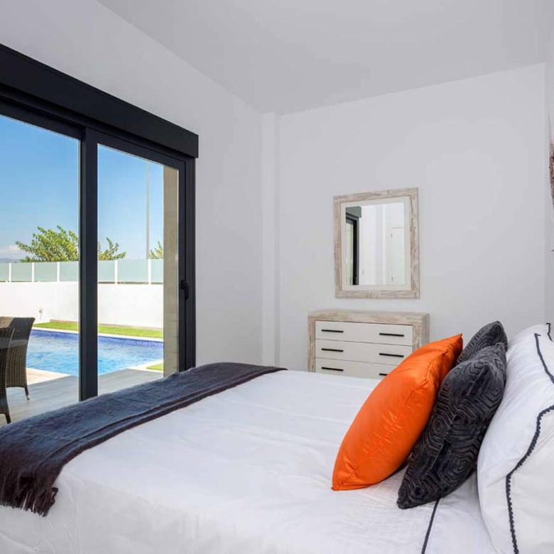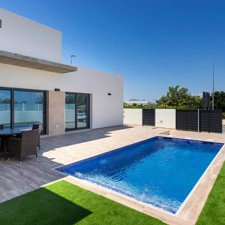 Independent villas in Daya Nueva, Costa Blanca Newly built homes on one floor in the new part of Daya Nueva. A few minutes walk from the town center. The property consists of 3 bedrooms, 2 bathrooms and a private pool of 18m2. Living / dining room with double height ceiling, open kitchen, natural light and option for solarium. The master bedroom has the option of a dressing room and en-suite bathrooms. Located in a new and quiet residential area, about 10 minutes from the beach of La Marina del Pinet and Guardamar del Segura. Easy access to the A-70 motorway and approximately 25 minutes from Alicante international airport. Property ID: GH-24147-D Price: €356,000 Property Size: 106 m2 Land Area: 233 m2 Bedrooms: 3 Bathrooms: 2 Property Type: Villa Property Status: For Sale