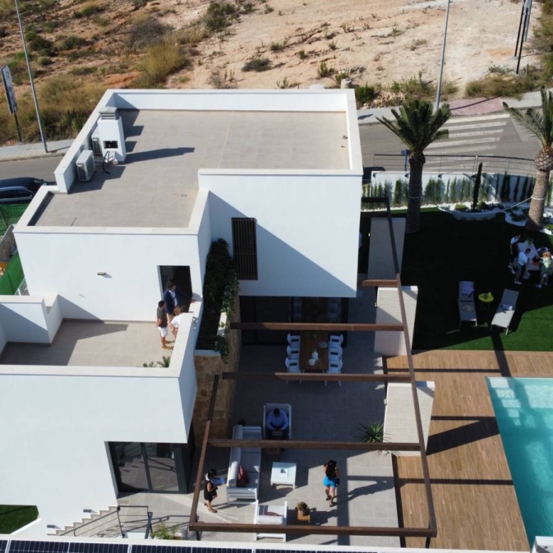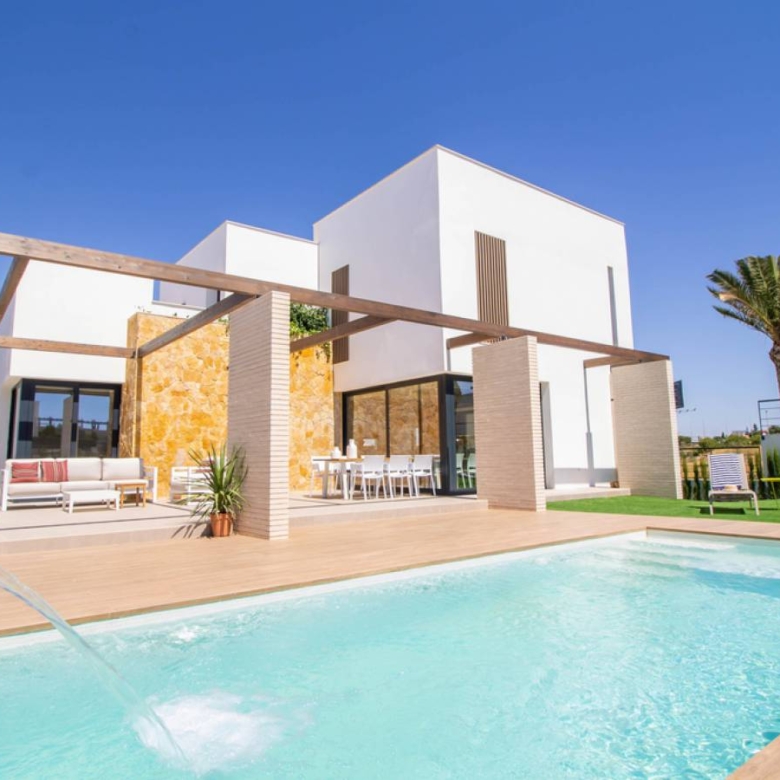 Villas in Dehesa de Campoamor, Costa Blanca, Alicante Impressive Mediterranean-style homes with 500m2 plots, located in a unique enclave: between the protected pine forest and the fantastic beaches of the Dehesa de Campoamor. Each villa has 4 bedrooms and 4/5 bathrooms, private pool and garden, more than 190m2 built. Premium homes built with the latest technologies and high quality materials. Houses full of light turned to the outside. The living-dining area connects with a large porch projecting the living areas outwards. 2 LEVELS: the basic design is distributed in 3 bedrooms and 2 bathrooms on the ‘garden floor’ and 1 bedroom, 2 bathrooms, living-dining room and kitchen on the ‘pool floor’, with the possibility of adding a solarium on the roof. 3 HEIGHTS (PREMIUM): This design has 1 bedroom, bathroom and garage on the ‘garden floor’, another bedroom, 2 bathrooms, living-dining room and kitchen on the ‘pool floor’ and 2 bedrooms with a living room and a small solarium on the first floor. In addition, there is the option of converting that small solarium into another suite room and building the solarium on the roof of the house, which could be accessed from the inside or, if you prefer, from the outside. ADDITIONAL FEATURES: Indoor fireplace €1,200Air zone 5200€Balay, Boch or similar brand appliances (Microwave, dishwasher, washer/dryer) €2,000Outdoor kitchen with countertop and sink €3,800Solarium with external staircase €27,425Shower in first floor solarium €1562Solarium with internal staircase €33,761Solarium first floor ground floor with glass €5,040Entrance pergolas and natural wood porch €8,352Jacuzzi in solarium €10,000Fifth bedroom suite on the first floor €25,000Artificial grass €5,000Pool heating pre-installation €561Assembly of pH and chlorine dosing €2,736Heat pump €6600Larger pool (4x8m) €7,800Largest pool (5×12.50m) €27,360Hot and cold shower in the pool €1,800 Property ID: GH-307297-D Price: €1,350,000 Property Size: 270 m2 Land Area: 500 m2 Bedrooms: 4 Bathrooms: 4 Property Type: Villa Property Status: For Sale