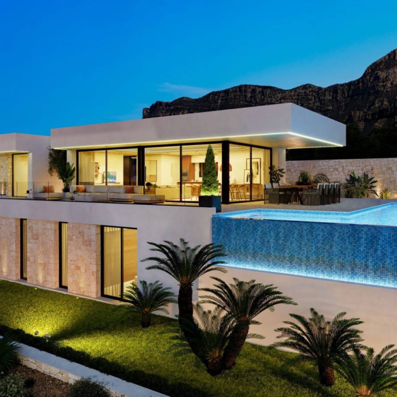 Contemporary villa for sale in Denia, Costa Blanca, Spain A splendid modern style property distributed over two floors. The main floor is uniquely divided into two wings, creating a functional layout and providing a special touch of privacy. On one side is the dining area and kitchen, while on the other are the master bedrooms, connected by a glazed passageway that adds to the villa’s distinctive character. It enjoys panoramic views of the sea and the entire coast of Denia. With 4 bedrooms, 4 bathrooms and 1 guest toilet, the villa offers a cosy and luxurious living space. The spacious terrace floods the interiors with natural light, creating a vibrant and serene atmosphere. Relax by the L-shaped infinity pool, as you immerse yourself in the beauty of the Mediterranean garden that surrounds the property. Villa San Juan redefines modern living with its distinctive design and exceptional amenities. Experience luxury in every corner of this marvellous residence, where contemporary aesthetics meet the charm of the Mediterranean landscape. Features: - Type: Villa- Bedrooms:4- Bathrooms:4- Living Rooms:1- Views: Sea views- Plot:1.600 m2- Open plan kitchen- Built area:322 m2- Terrace:191 m2- Heating: Electric underfloor heating with heat pump- Private swimming pool- Barbecue area- Hot/cold ducted air conditioning- Open terrace- Covered terrace- Parking space- Utility room- Outdoor shower- Garage- East facing Property ID: GH-307772 Price: €1,860,000 Property Size: 322 m2 Land Area: 1600 m2 Bedrooms: 4 Bathrooms: 4 Property Type: Villa Property Status: For Sale