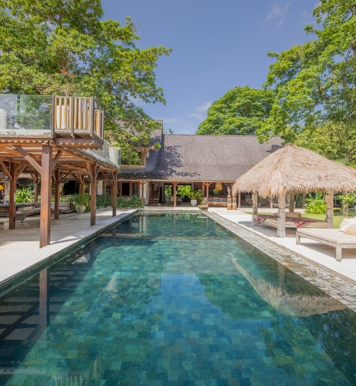 Tucked away in a quiet enclave on the edge of Umalas, this exceptional estate offers a rare combination of refined luxury, exceptional space, and prime Kerobokan freehold land. Set on an expansive 2,389 square meters, this impressive seven-bedroom, eleven-bathroom property seamlessly blends contemporary design with warm tropical touches—creating a private retreat ideal for sophisticated living and upscale entertaining.The 1,999-square-meter estate is made up of two connected villas, linked by a 20-meter swimming pool, BBQ area, outdoor dining pavilion, and rooftop zone. One villa features three ensuite bedrooms, its own living area, and a kitchen—perfect as a guesthouse or independent residence. The main villa offers four spacious bedrooms, two office rooms, a main kitchen and dining area, and a grand lounge space. Upstairs, the master suite includes a walk-in wardrobe, a generous bathroom, and a private office, while the top level reveals a loft-style cinema room and a rooftop jacuzzi with sweeping sunset and mountain views.Both villas are finished to an exceptional standard, with premium amenities including rain showers, outdoor tubs, and high-end furnishings throughout. The layout offers privacy and flow, ideal for multigenerational living or high-end rental use.Outdoors, lush gardens frame the long central pool, complemented by a stylish gazebo and open-air dining area for effortless entertaining. The property also includes secure parking for four cars, a deep well, 13,500-watt electricity supply, and comes fully furnished.FREEHOLD estates of this size and quality are increasingly rare in this prime corner of Kerobokan—just minutes from the excitement of Seminyak and the beaches of Canggu. Offered at iDR 50.5 billion, this is a statement property in Bali’s luxury real estate market.Nearby: Pepito Market 1 km, Amplitude Skatepark 1.2 km, Daily Hub Cafe & Co Work 1.3 km, De Gym 1.5 km, Xich Lo 1.5 km, Jungle Padel Kerobokan 2 km, Liga Tennis 2 km, ProEd Global School 2.5 km, Batu Belig Beach 4km, Berawa Beach 4.5 km