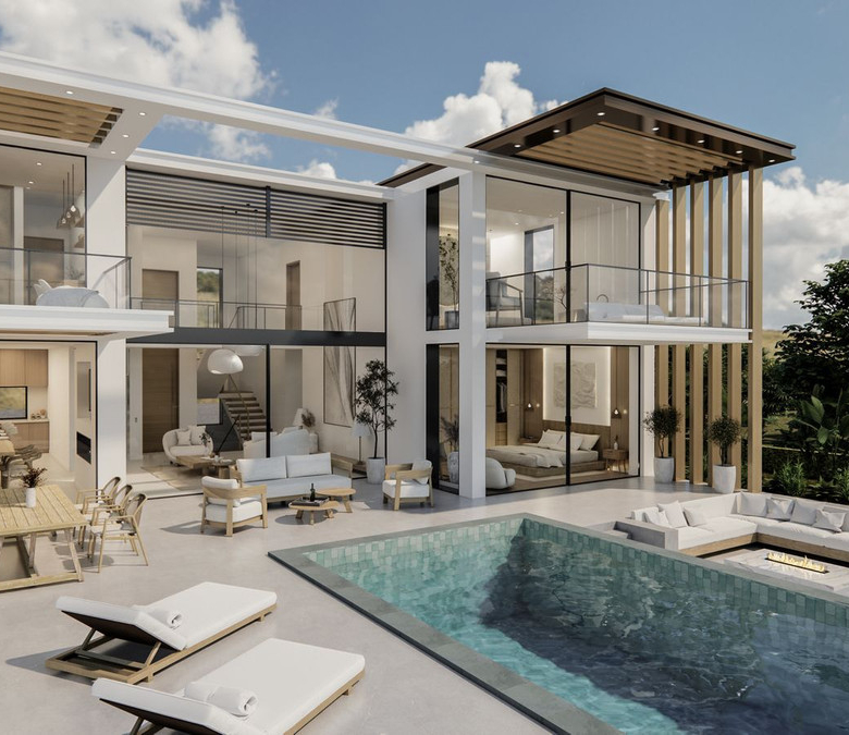 This contemporary villa stands out for its architectural design that reflects a game of volumes with a contemporary, Mediterranean and elegant aesthetic, offering relaxation and comfort, inviting to immerse in unique lifestyle.