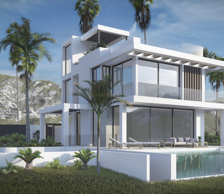 This villa is a new build turnkey villa project situated on a cul de sac in Urb. Buenas Noches (Upper zone) approx. 400 m2 to the beach, with access via a pedestrian bridge, about 15 min. walking distance. The plot size is 692 m2 and boasts panoramic views over the mediterranean sea, with views of the City of Estepona, The mountain of La Concha of Marbella and Sierra Bermeja Mountain of Estepona. You can see the waves crashing on the shore from the property. The property will be built on 3 floors plus the usable solarium.