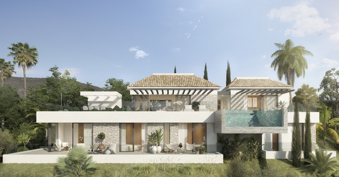 The villa offers you an exclusive retreat on the Costa del Sol, where the sun shines 325 days a year. Designed for those seeking luxury and tranquillity, this villa features 4 bedrooms, 3 bathrooms, 1 toilet, and a stunning infinity pool overlooking the golf course and valley, set on a 1,216 m² plot.