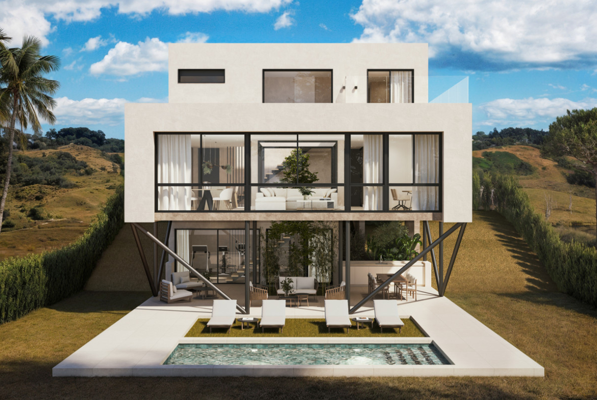 Luxurious and modern high tech villa with 4 bedrooms, 4 bathrooms, featuring home automation, a solar ecosystem, a private pool, and panoramic views.