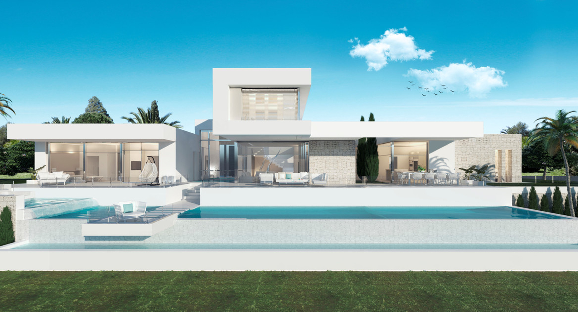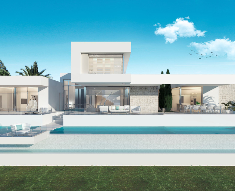 Luxury contemporary villa located in Los Flamingos, a residential and golf area in Benahavís, next to the five-stars Villa Padierna Palace Hotel, offering elegant facilities, spa service and restaurants.