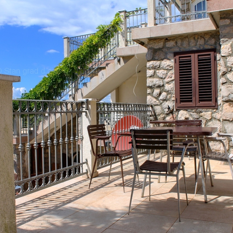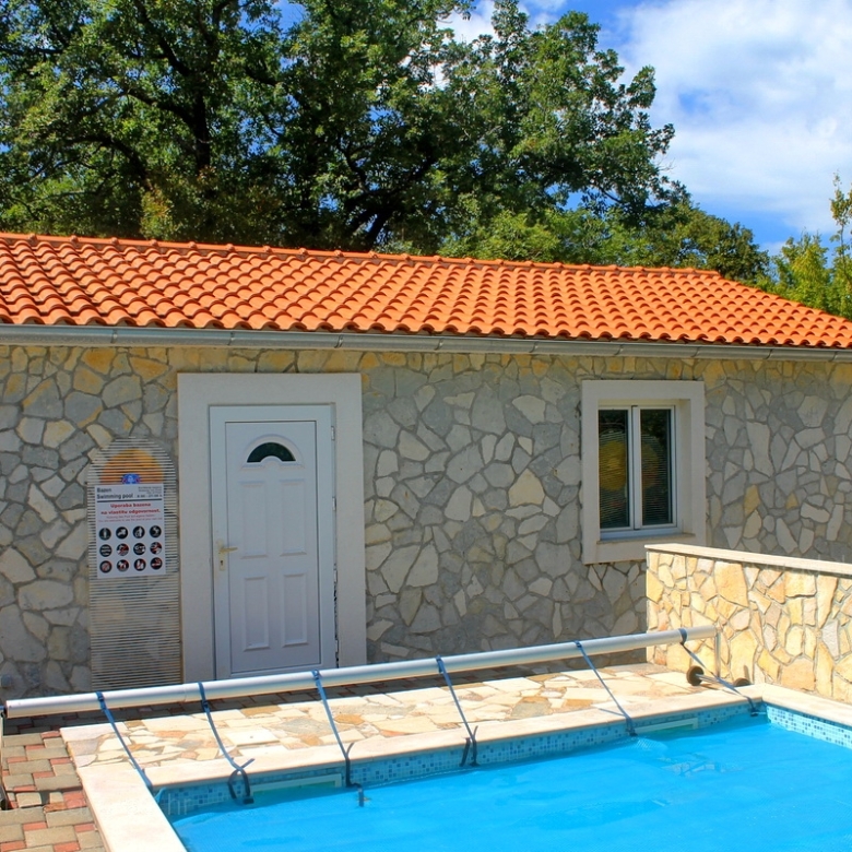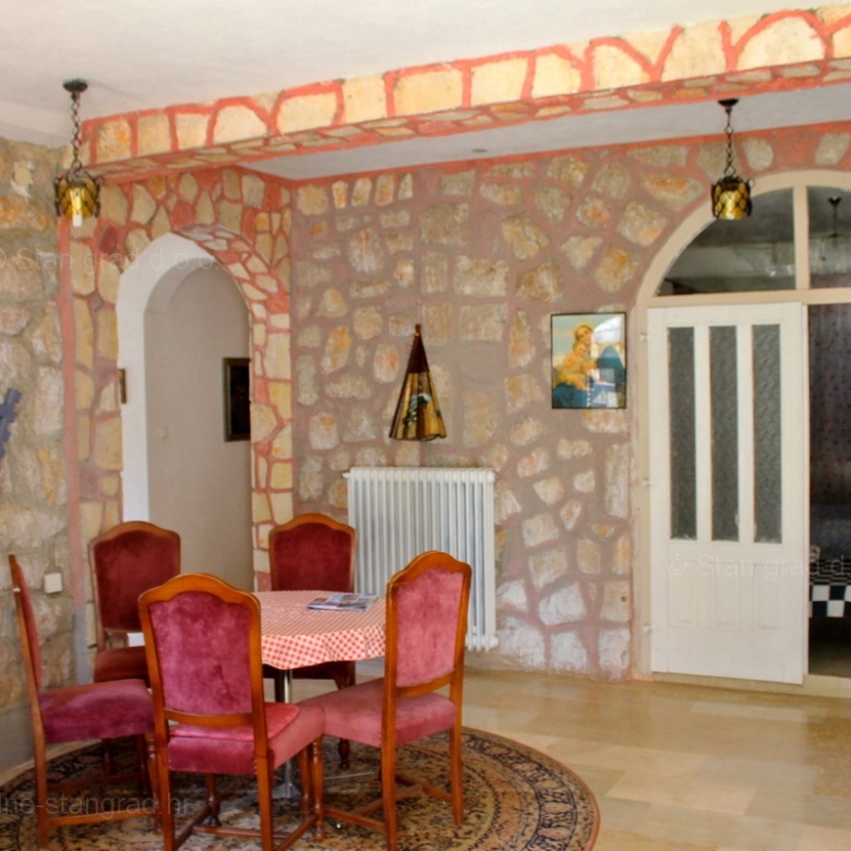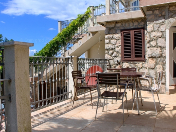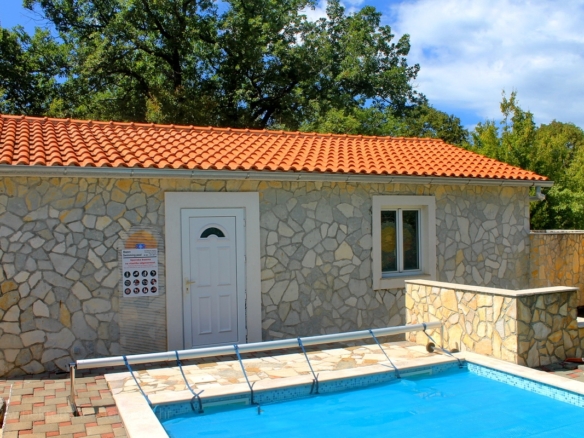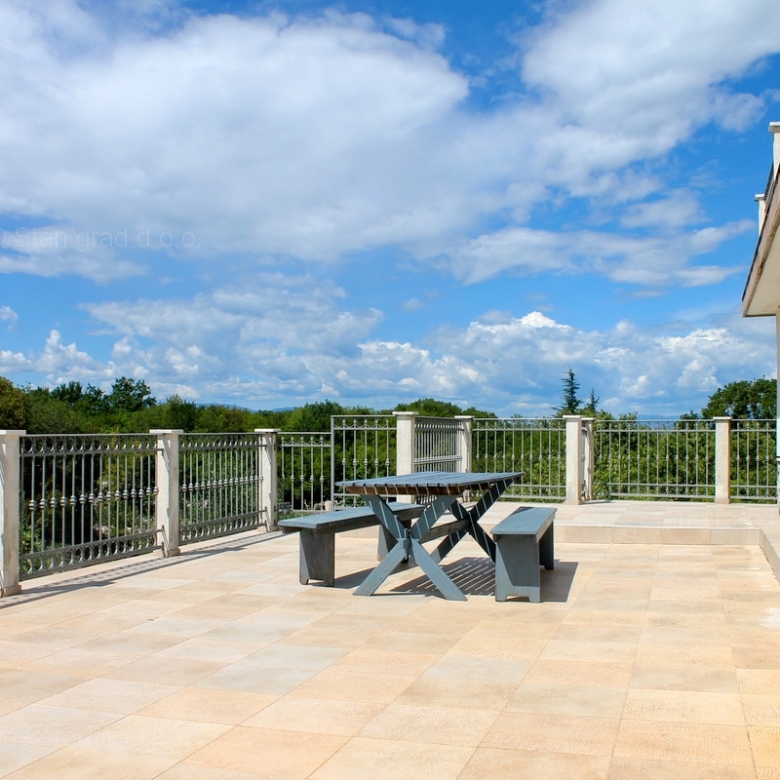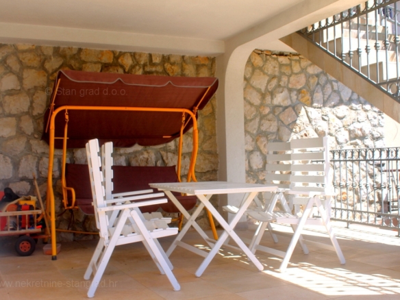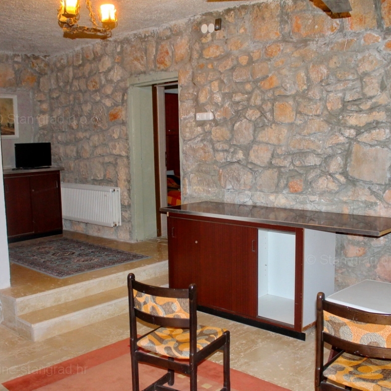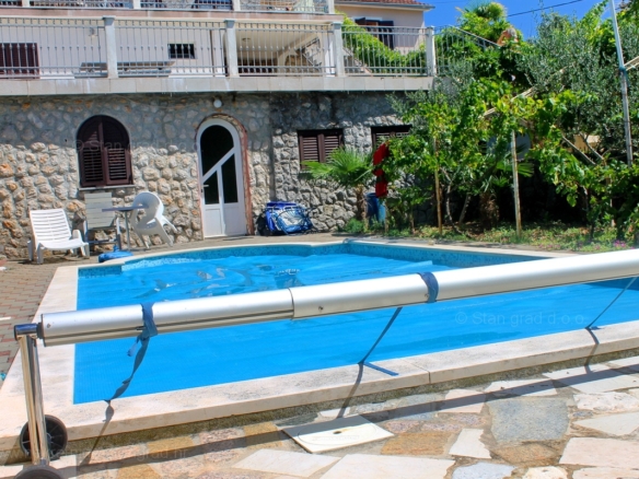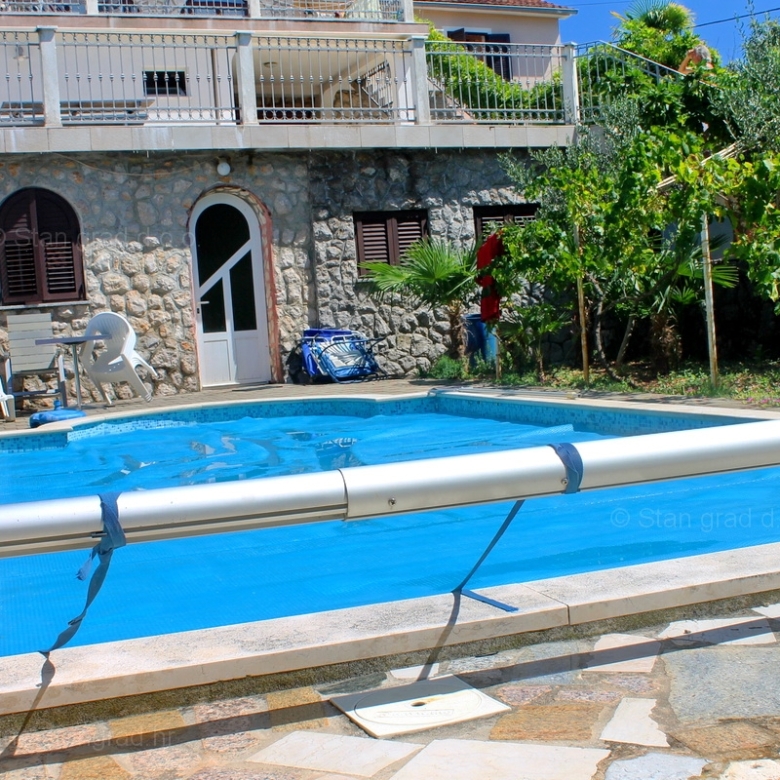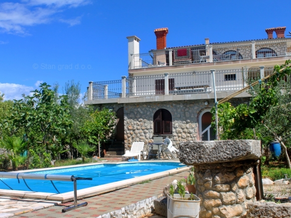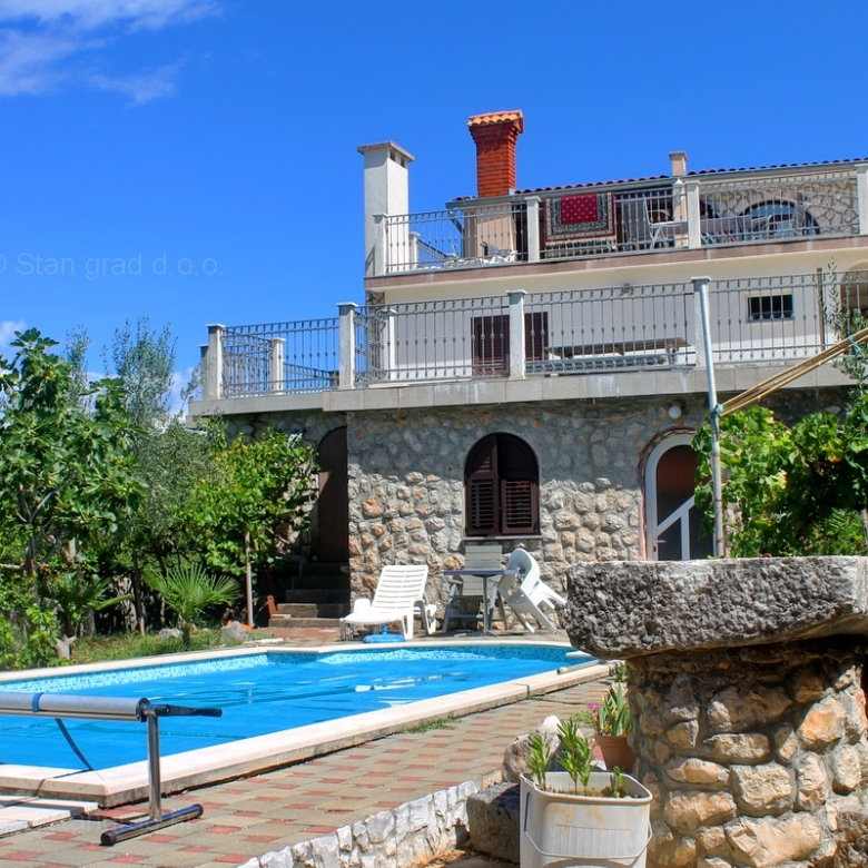 The real estate agency Stan Grad Immobilien offers for sale an interesting holiday house in attractive area of Island Krk. This interesting property has a good location close to the centre of Dobrinj, a popular tourist destination. This object built in line with quality standards consists of 3 levels. It is measuring 600 m2. This area includes a large tavern on the ground floor, which is currently converted into 2 apartments. On the first floor there are 2 one bedroom apartments of 50m2 and on the second floor there is an apartment of 100 m2 all separated by an external staircase. There is a possibility of conversion into a boarding house or some other type of family business. The property also has a beautifully landscaped large garden with swimming pool, sauna and sun deck. The yard comes with comfort parking place and garage. The house is located in a quiet part of a small town and offers enjoyment of olive trees and Mediterranean vegetation of the garden that surrounds it. In addition, property offers stunning sea and coastal area view. Since the seller is a natural person, 3% tax applies to listed price. The seller guarantees complete property documentation and quick transfer of ownership. Agents of the real estate agency Stan Grad Immobilien will provide an excellent and comprehensive service through out entire process.