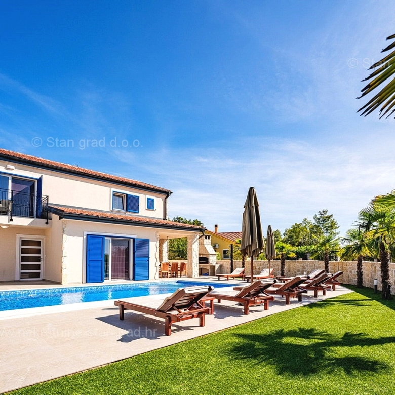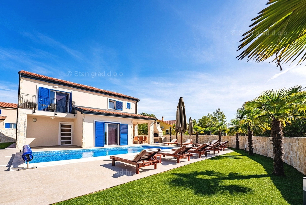 Dobrinj, surroundings, new detached house with swimming pool in a quiet location