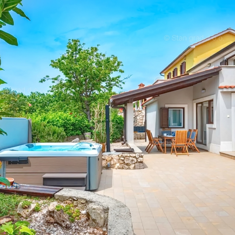 Our agency offers a fully furnished stone house for sale in the super attractive northern Adriatic area of the island of Krk, in Kvarner, which provides the perfect atmosphere for spending holidays or living. This interesting property is in a good location in the vicinity of Dobrinj. Structurally, this is a semi-detached house. The impeccably constructed property consists of a total of 2 floors. The structure of the space provides for the residence of one family. The charming house occupies a total area of 169 m2. The mentioned area contains a living room and kitchen with dining room, 2 bedrooms, bathroom, social room and terrace. Attached to the described house is a well-organized garden of 400 m2, ideal for relaxing and spending free time. The property includes 4 parking spaces and a furnished storage room of 20 m2, which are located across the road. The spacious garden of the described property is arranged for comfortable parking of several vehicles. In addition to the above, it should be noted that the house has a beautiful view of this coastal town. This property is owned by a natural person and upon its transfer, the buyer of the house is obliged to pay a 3% real estate transfer tax. The owner of the property guarantees the orderliness of the relevant ownership documents and the possibility of a quick transfer of ownership of the house to the buyer. Our staff will make sure that you feel at home in Kvarner. Visit us on the island of Krk. If you decide to choose us, the expert team of the Stan Grad Immobilien brokerage office will be happy to help you transfer ownership of the property and the utility bills to your name.