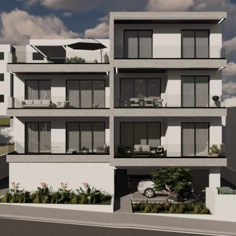 The modern residence is located in the Nicosia Municipality, moments away from Acropolis park and many other amenities. The project consists of 10 apartments: 4 one bedroom, 5 two bedroom, and 1 three bedroom. This dreamy two bedroom apartment feature a covered parking space, a main shower, an additional shower in the main bedroom, open-plan living and dining area, kitchen, and a covered veranda.