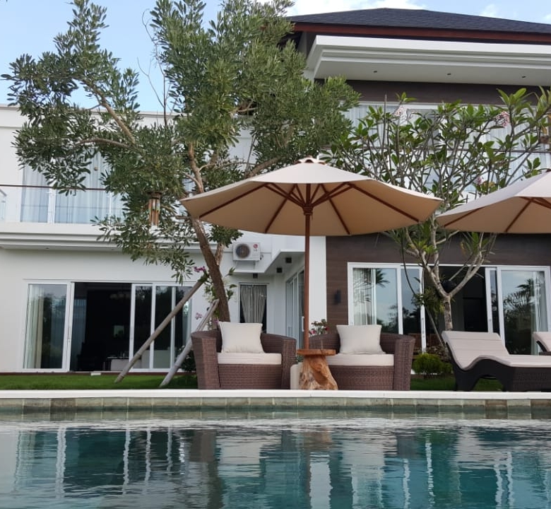Located within an exclusive private residential enclave bordering hole 13 at the award-winning New Kuta Golf Course, this beautiful residence sits on 1200 square meters of prime freehold land and makes for a stunning family home or investment property.