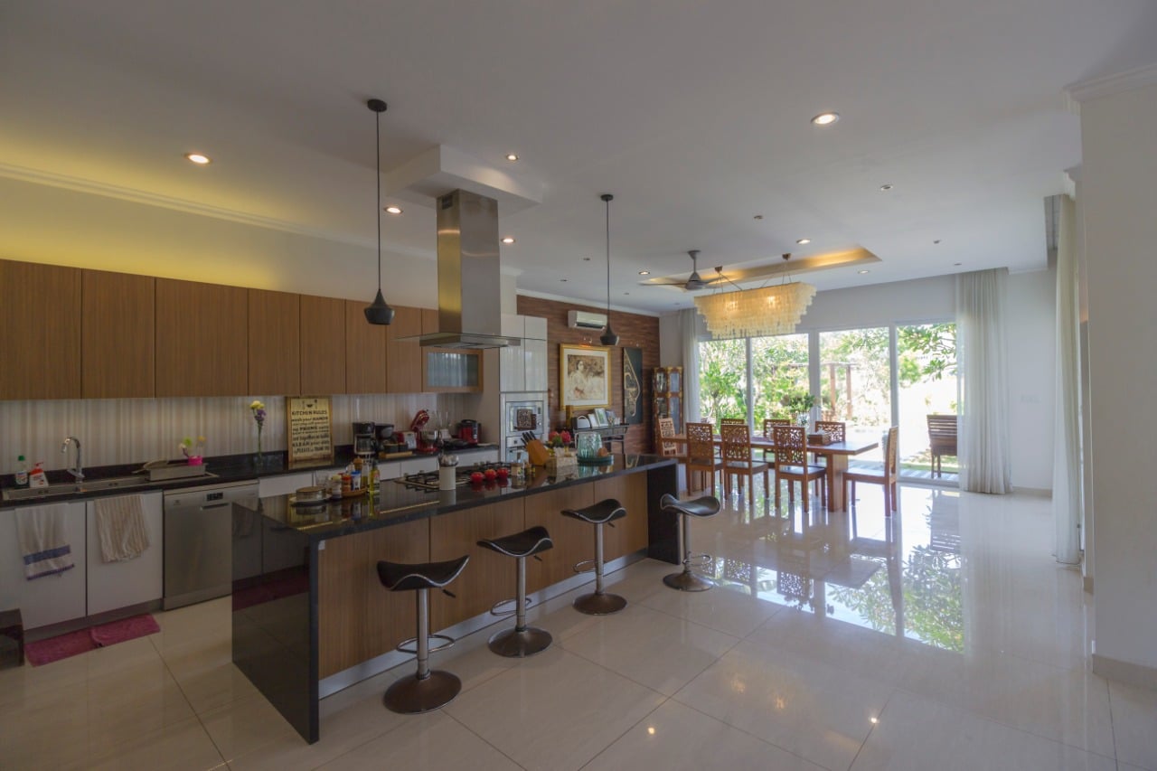 Featuring 5 + 1-bedroom suites, a fully fitted western style kitchen, private swimming pool amidst tropical gardens, and spacious luxury living and dining areas, the property also enjoys picturesque views over the golf course and turquoise waters of the indian Ocean.