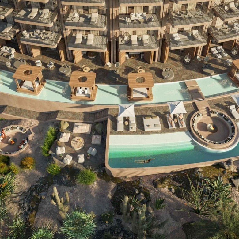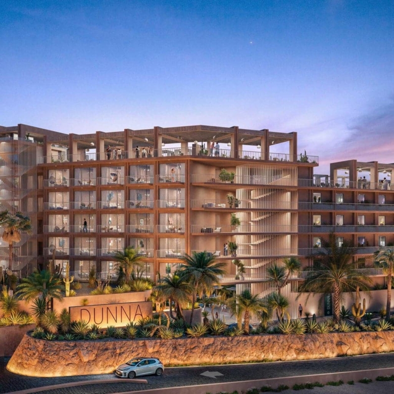 Ownership at DUNNA includes access to over 10,000 square meters (107,600 square feet) of amenities. Residents enjoy exclusive use of rooftop pools and bars, wellness areas with spa and gym facilities, adult and family pools, paddle and pickleball courts, reading lounges, private BBQ spaces, and curated dining concepts. The community also includes boutique shopping, art galleries, and an integrated short-term rental program with full-service management.