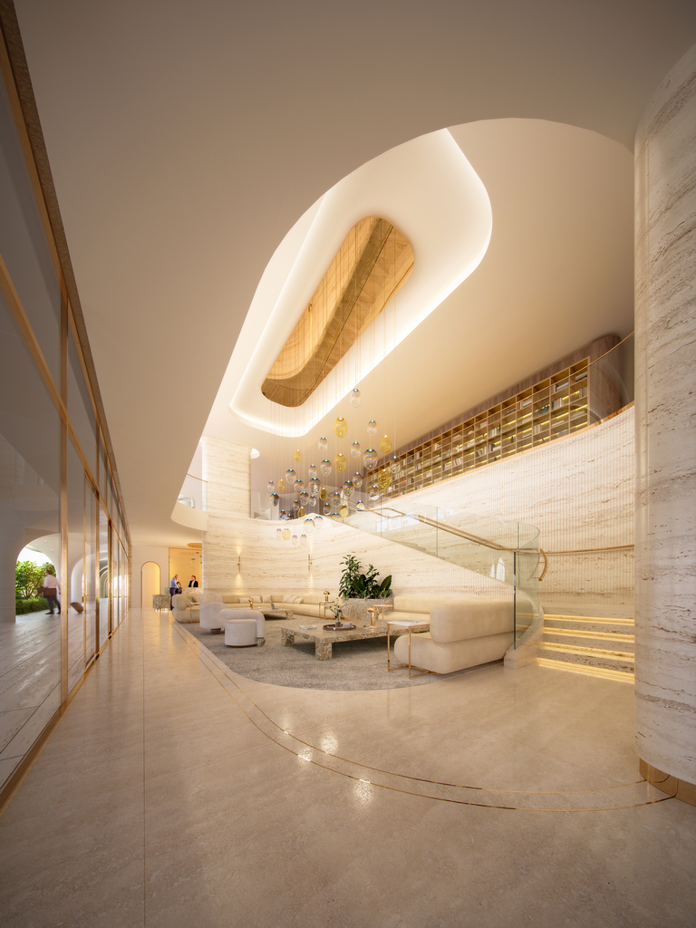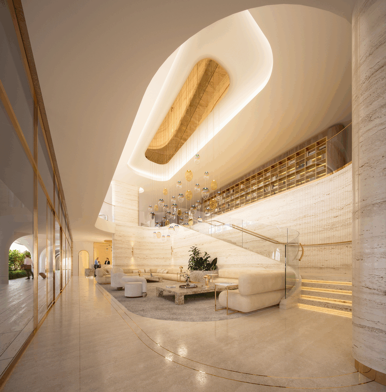 Hotel-style lobby, high-speed elevators, and art-curated interiors