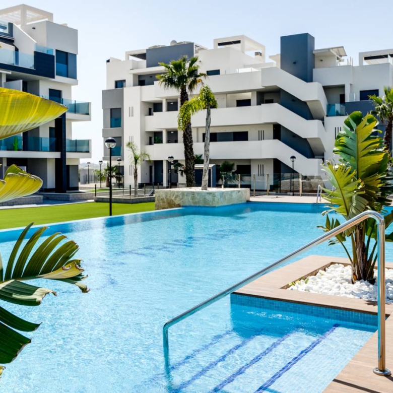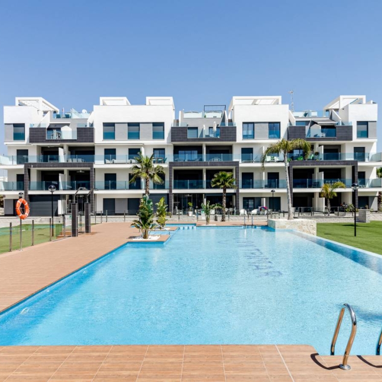 Apartments in El Raso, Guardamar del Segura, Alicante 130 homes, with 2 or 3 bedrooms and two bathrooms, which revolve around a large green area with a community pool, which has taken a great leap in quality and size compared to our previous developments. The urbanization is private, closed to the outside and has all the comforts, SPA, indoor GYM, outdoor GYM, recreation areas, Children’s Park, Minigolf and Petanque area. All homes include a garage space in the basement included in the price, it is also possible to complement them with an additional storage room in the basement to be purchased separately. As you can see in our new show flat, we have sought a leap in quality in our homes, and we include a series of elements in them that complete our offer even more, all of this, trying to respect our prices as much as possible and thus remaining as It is common in our company, as the best offer in relation to quality price on the market in the Costa Blanca area. Property ID: GH-24133 Price: €219,000 Property Size: 78 m2 Land Area: 78 m2 Bedrooms: 2 Bathrooms: 2 Property Type: Apartment Property Status: For Sale