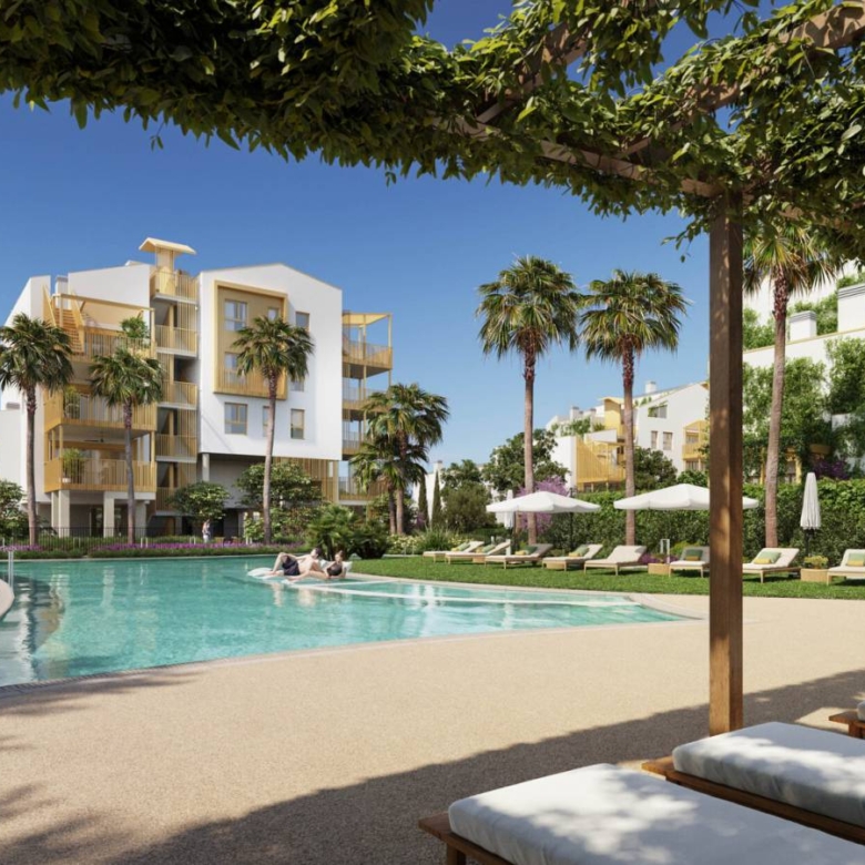 Apartments in El Verger, Costa Blanca The buildings are designed as compact volumes, a response to the architects’ and designers’ constant quest for efficiency in the residential complex. These decisions, made throughout various key points of the entire residential area, will ensure that your home is at the right temperature both in winter and summer. A few meters from La Almadraba beach, in El Verger, and a short distance from Denia, a project is born that challenges convention. Its intention is to become a sustainable, healthy, and respectful community. The residential complex offers the following types of housing: * 1, 2, or 3-bedroom apartments* 2 and 3-bedroom townhouses* 2 or 3-bedroom penthouses The main feature of the homes in this residential complex will be their large terraces. Of regular proportions, these are the ideal spaces for outdoor living. The connection of the living room with these spacious terraces will structure your home as a habitable volume where the interior merges with the exterior. The precision in the choice of construction materials will allow you to enjoy the extraordinary views offered by the natural environment permanently. Common areas: * Landscaped areas* Spacious communal pools* Gym* Play areas for children* Sauna* Gardens* Social club* Chill-out area* Urban garden* Pet spa* Beach point* DIY workshop Property ID: GH-307659 Price: €392,000 Property Size: 90 m2 Land Area: 112 m2 Bedrooms: 3 Bathrooms: 3