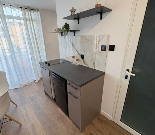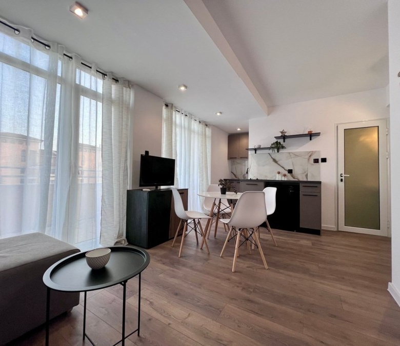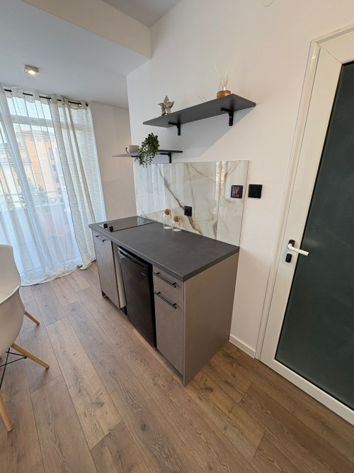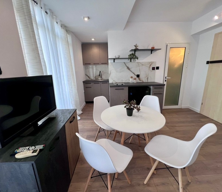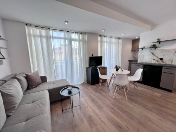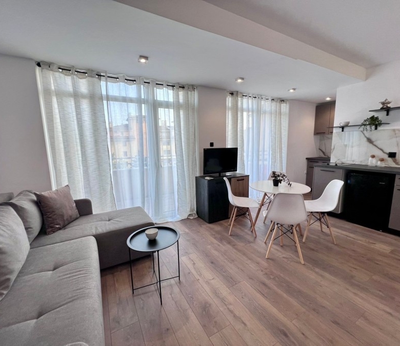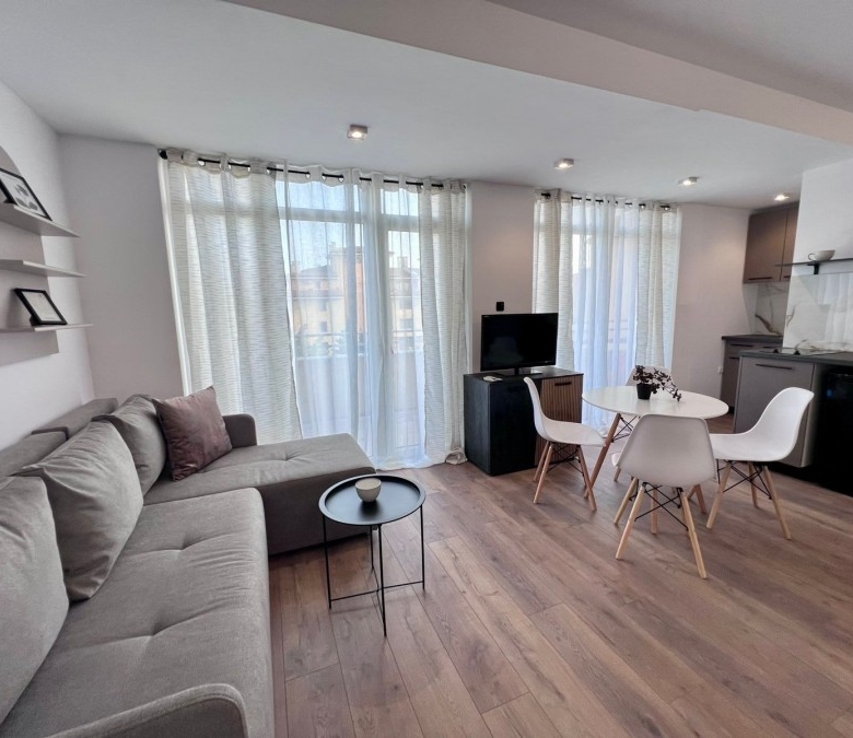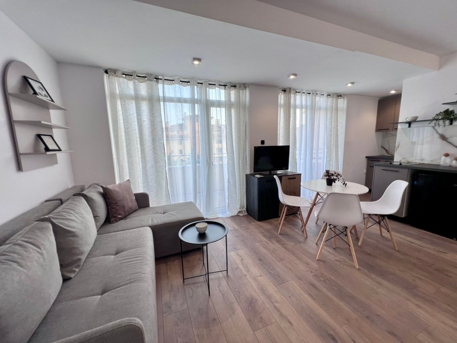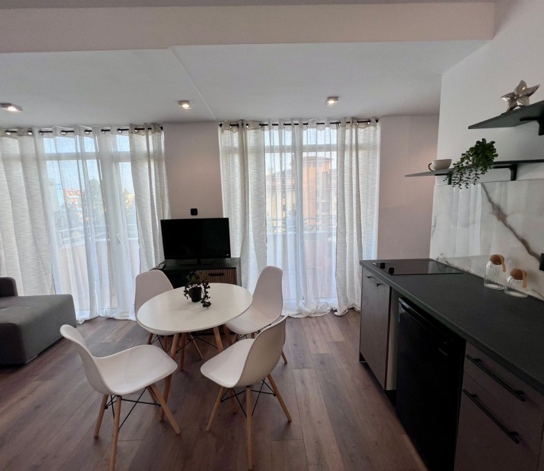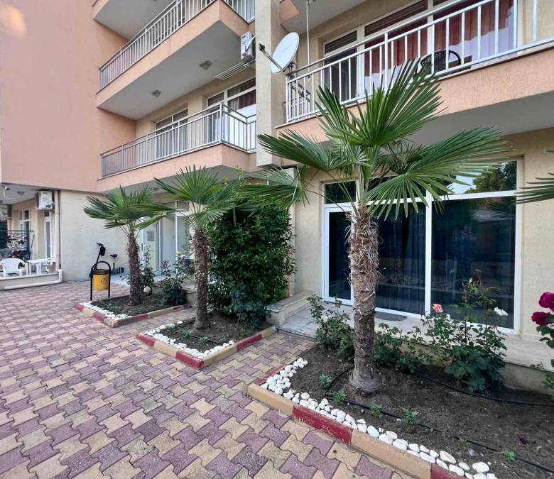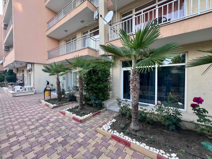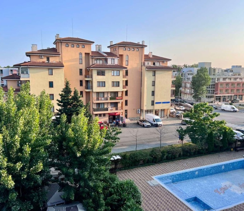 Elegant 1 BED apartment, 47 sq.m., in excellent condition, Kamelia Garden, Sunny beach KC Properties is pleased to offer you this nicely furnished 1 BED apartment boasting of its very good location. The property is part of Kamelia Garden apart-complex and is situated within 400 m to the sea and 200 m to Bus Terminal in Sunny beach. It is within short walking distance to a couple of big supermarkets, shops, bars, pharmacy. On site facilities include:- Swimming-pool with children’s section;- Reception;- Restaurant serving Bulgarian cuisine;- Summer garden; Security; Allocated parking area. The apartment that is for sale is situated on the 5th – top floor and has a total living area of 47 sq.m. It comprises of: – Open-plan kitchen with living-room that has access to a balcony with pool views; – 1 bedroom in a niche; – Bathroom, which is equipped with shower cabin; – Balcony with pool views No lift. Brand new furniture and equipment! The apartment is offered for sale inclusive of all furniture and electric appliances. It is excellent for renting out due to its very convenient position being close to wide range of amenities and attractions. Annual maintenance fee – 8 EUR/m2