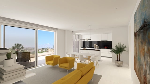 The residence benefits from an elevated position that ensures excellent natural light and some units with partial sea views. With its sleek architecture and quality materials, the building delivers both style and durability. The surrounding area is tranquil, yet conveniently close to local shops, restaurants, and the historic center of Lagos.