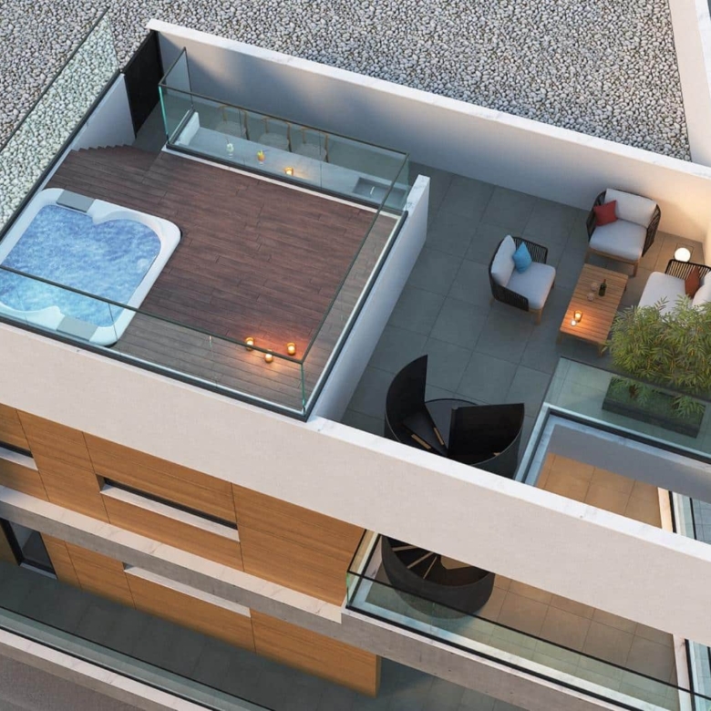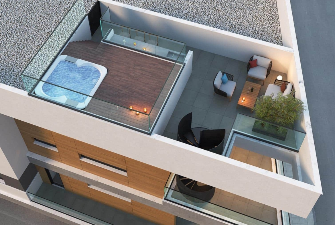 This elegant modern penthouse, just a 10-minute drive from Limassol’s lively city center, offers a perfect blend of convenience and tranquility. Featuring a spacious roof garden ideal for relaxation or entertainment, it provides a serene retreat while remaining close to the vibrant energy of city life. Perfect for those seeking a refined, secure home in a peaceful residential setting.