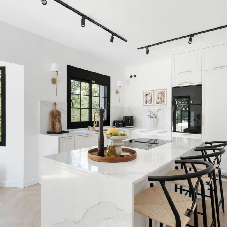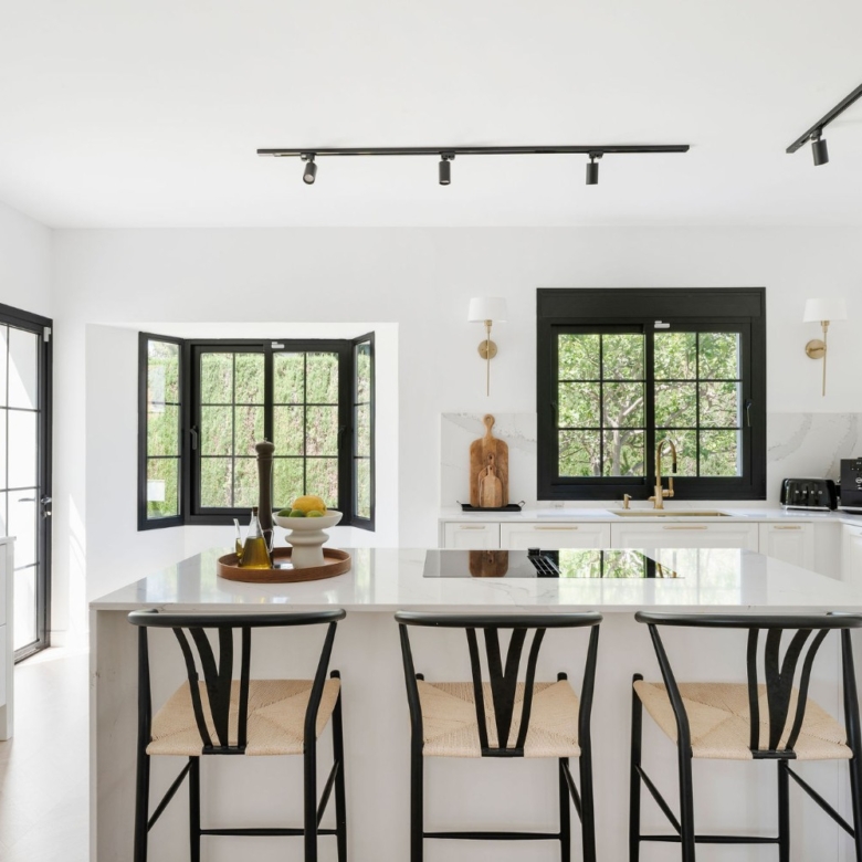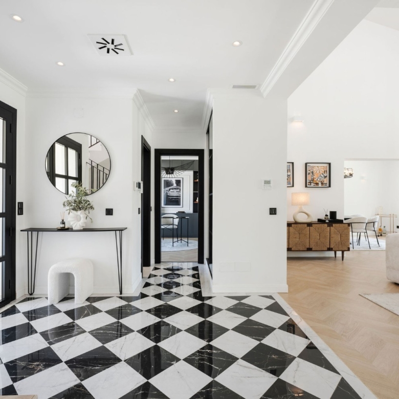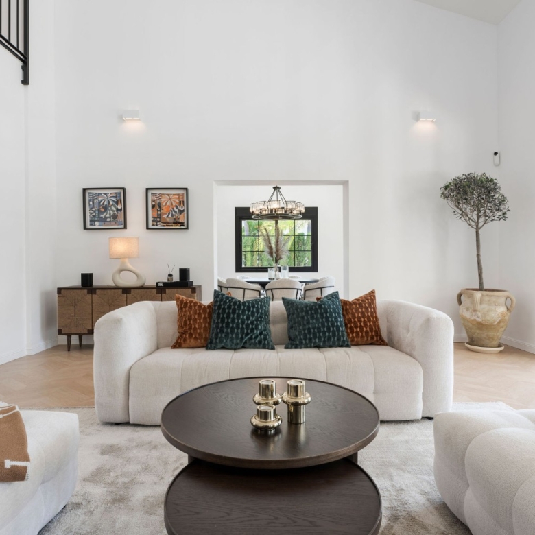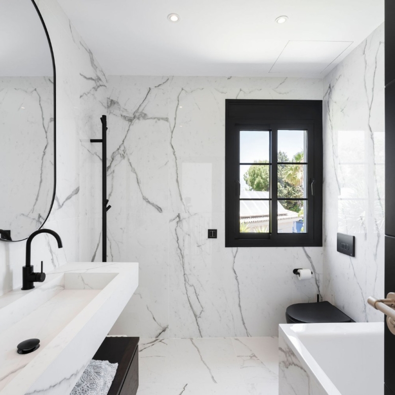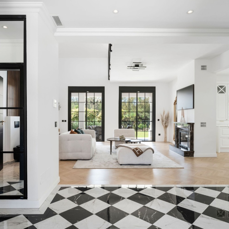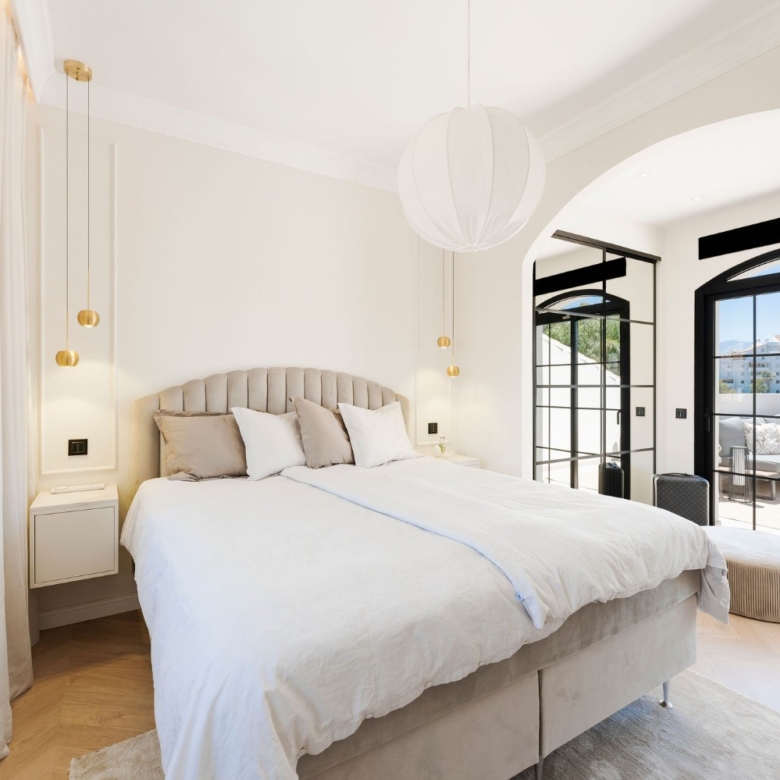 Welcome to this exquisite villa, recently transformed through a complete renovation, where modern elegance meets Scandinavian design. Upon entering, you’re welcomed by an abundance of natural light and an open, airy ambiance, perfectly complemented by carefully selected materials. The spacious ground floor boasts an open-plan layout, featuring both formal and informal dining areas, a dedicated office space, and a stylish en-suite bedroom. Expansive terrace doors seamlessly connect the indoor and outdoor spaces, leading to a covered terrace, a BBQ area, and a beautifully landscaped garden with a heated pool—ideal for year-round enjoyment. Upstairs, the serene master suite offers a private retreat, accompanied by a cozy relaxation area and two additional bedrooms sharing a well-appointed bathroom. The basement level is designed for ultimate comfort and entertainment, featuring a home cinema, a large laundry area, a family bathroom, and a fifth bedroom. From here, you also have direct access to the garage. Located in a prestigious residential area between Puerto Banús and Estepona, this villa offers a prime location just a short drive from Marbella and the Golden Mile. With amenities close by and the beach within easy reach, this is a true gem of a property!