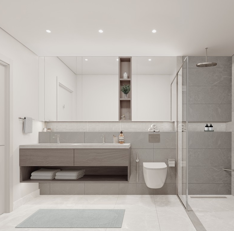 Bathrooms: Luxurious bathrooms featuring high-quality fixtures, custom-designed cabinetry, quartz stone countertops, and modern showers